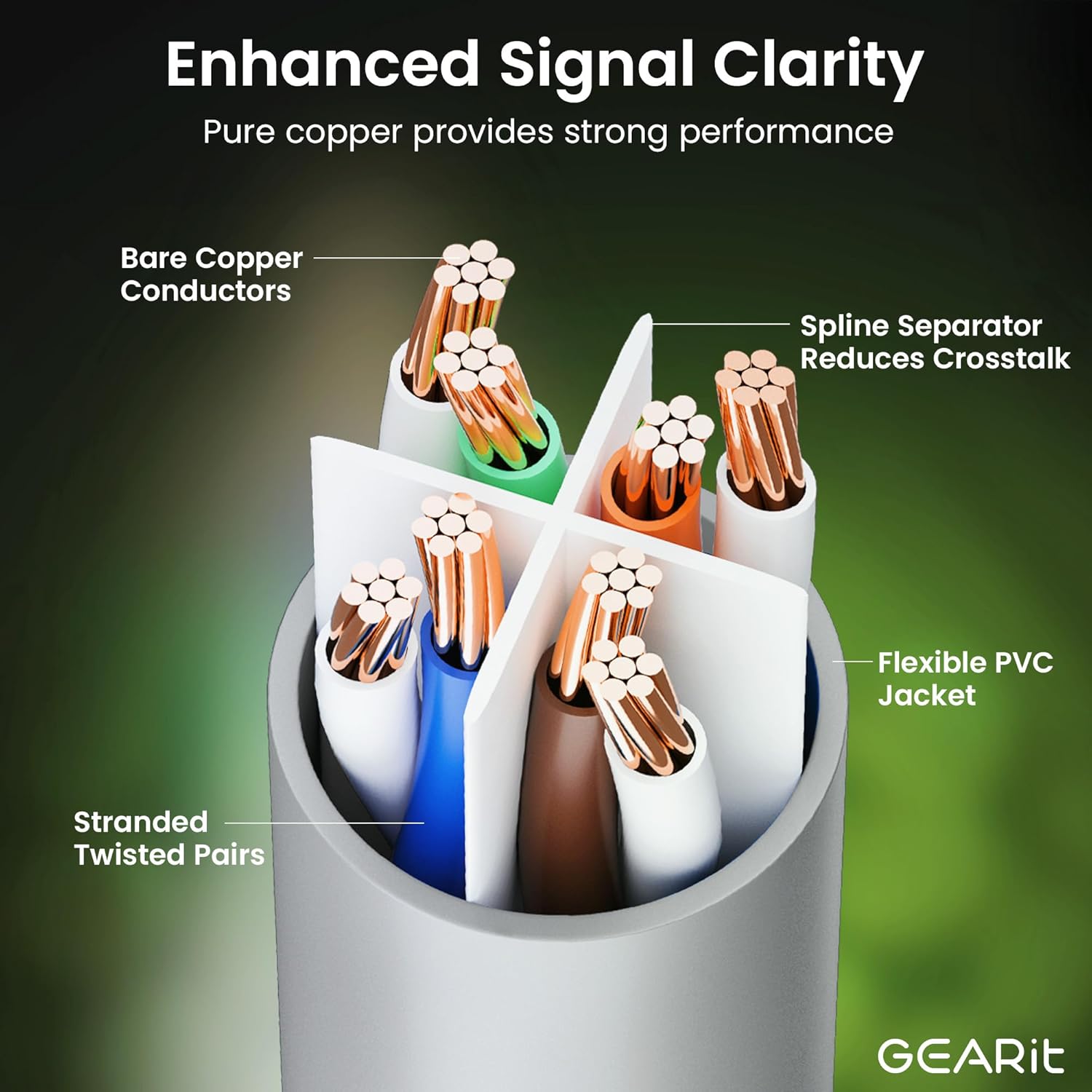 GearIT Cat 6 Ethernet Cable (20-Pack 1 Foot) Cat6 Network Patch, 10Gbps, RJ45, Snagless Cord, Gold-Plated Connectors, Internet for PC, TV, Tablet, Router, Printer, Servers, IT Data Center - Gray