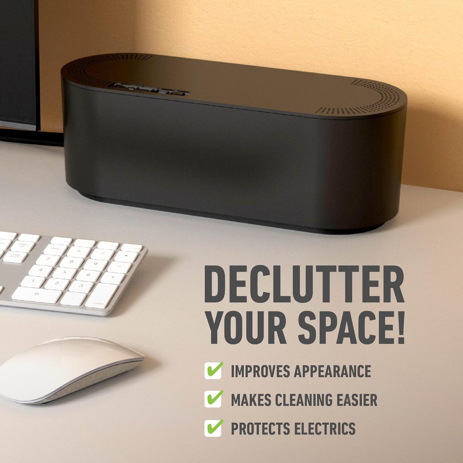 D-Line Cable Management Box, Power Strip Cover, Floor Outlet Hider, Desk Cord Organizer, Hide Extension Leads, 12.75" (L) x 5" (W) x 4.5" (H), for use with Power Strips up to 10.5in (L) - Small, Black