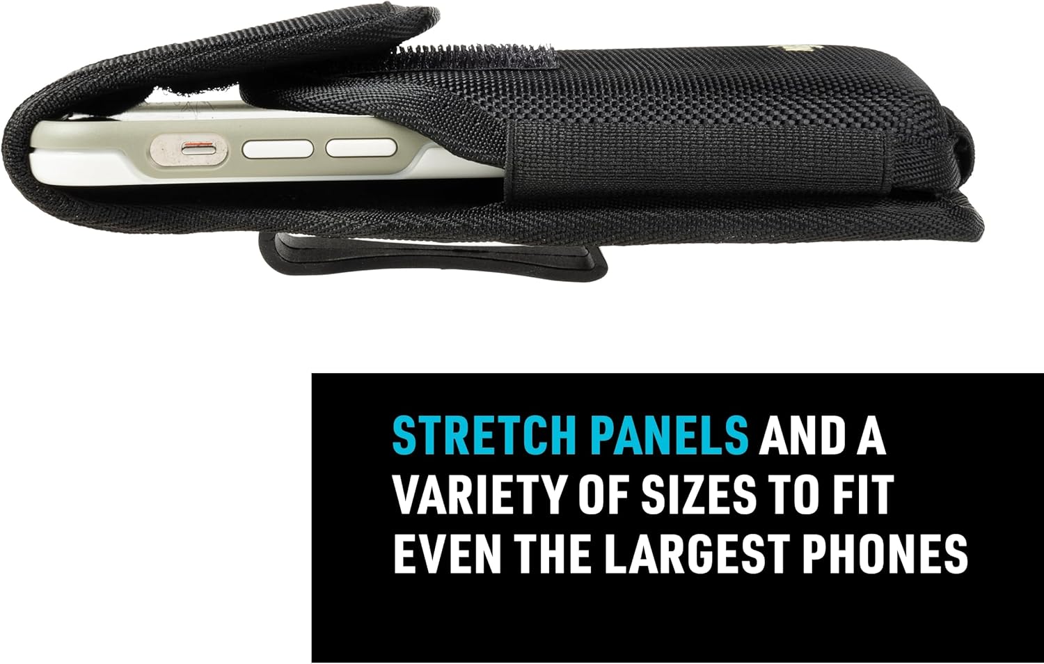 - Phone Accessory with Extra Storage: This cell phone holster features a pocket for IDs, cash, and credit cards; the stretch panels offer the best fit with or without a case