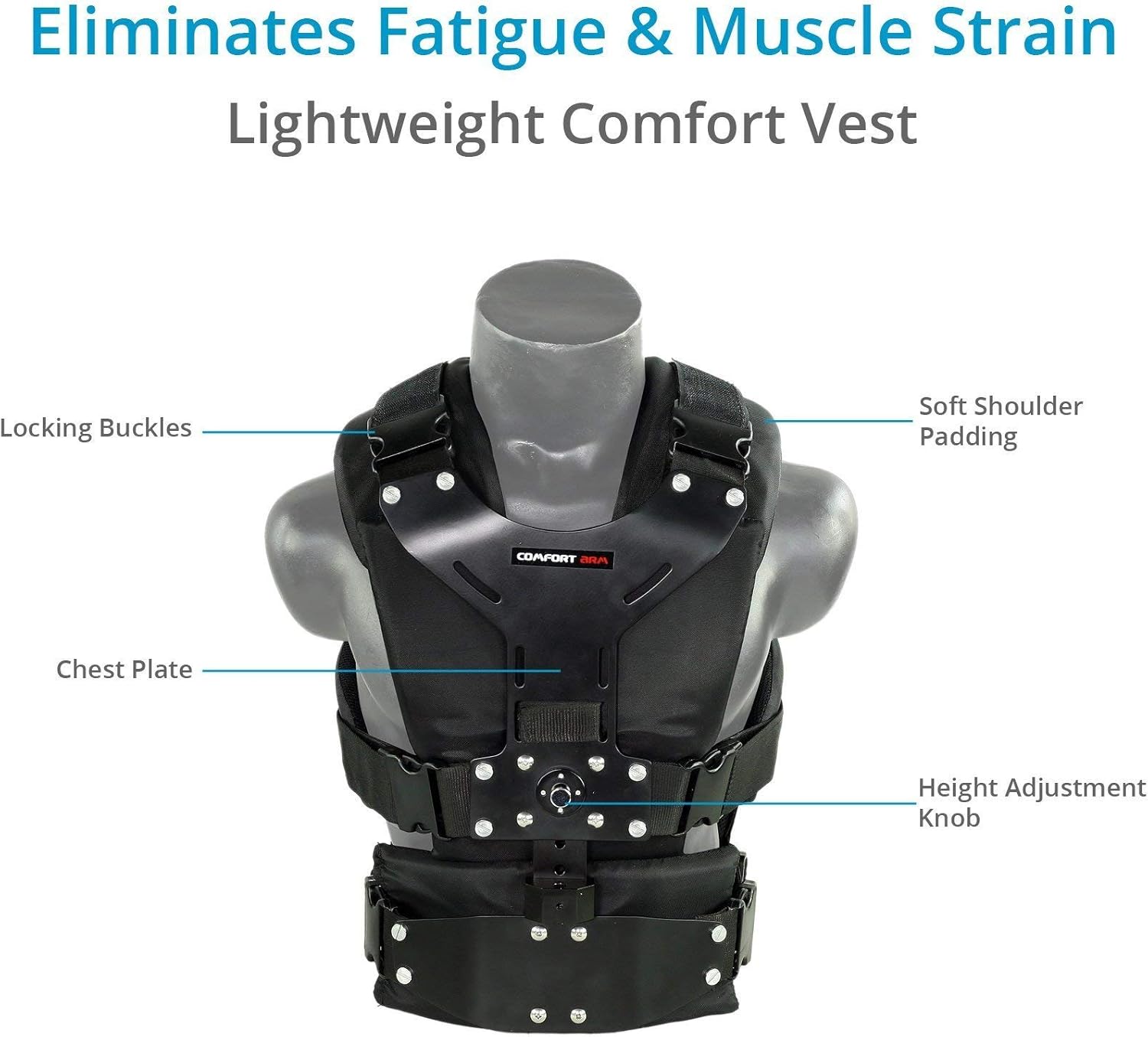 Flycam 5000 Handheld Camera Stabilizer with Comfort Arm Vest. Precise Balancing, Smooth & Fatigueless Operations. Quick Shock Absorption, Free Quick Release, Arm Brace & Table Clamp (FLCM-CMFT-KIT)
