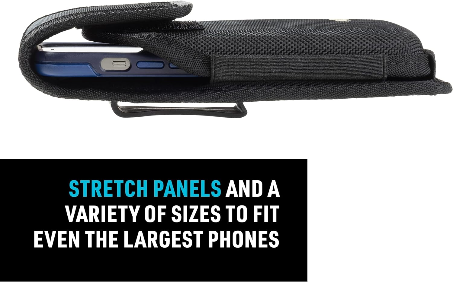 - Phone Pouch with Top Closure: This rugged hardshell phone holster keeps even the largest phones protected and accessible in a fixed vertical position at your hip