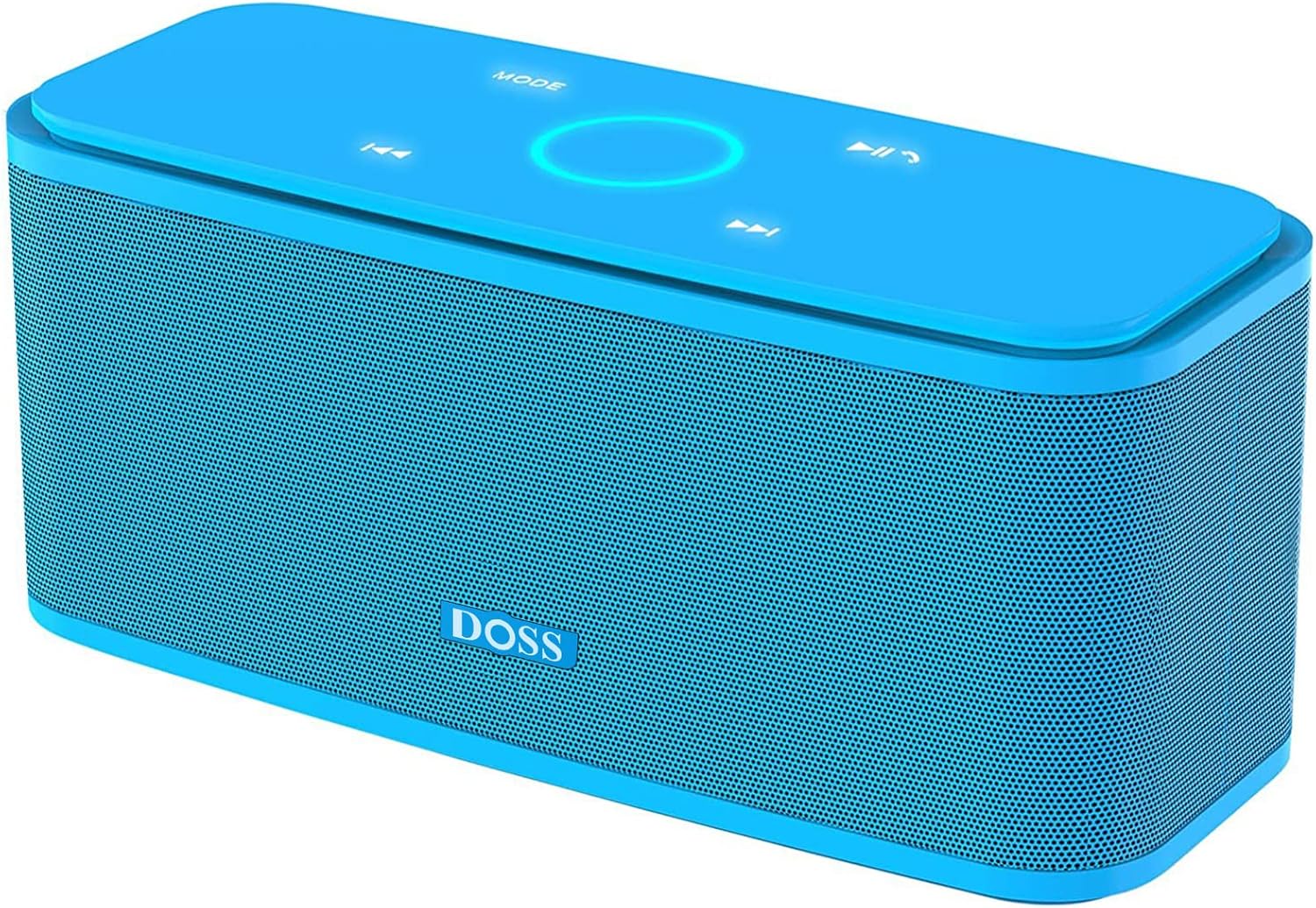 DOSS SoundBox Touch Wireless Bluetooth Speaker with 12W HD Sound and Bass, IPX5 Water-Resistant, 20H Playtime, Handsfree, Portable for Office, Home, Outdoor, Travel-Blue