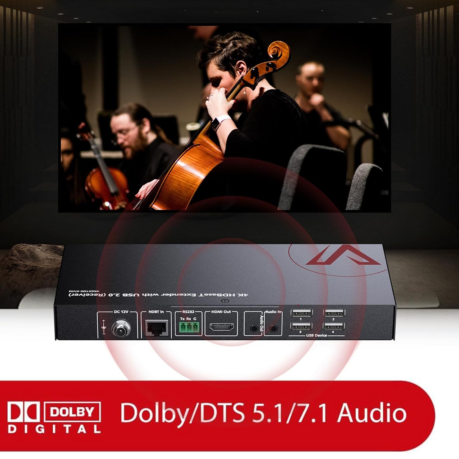 AV Access HDMI USB Extender(HDBaseT) KVM, 100m/330ft 4K 60Hz 1080p 120Hz Over Cat5e/6/6a/7, 4 Ports USB2.0, No Signal Loss and Latency, RS232, POE, Independent EDID Management (4KEX100-KVM)