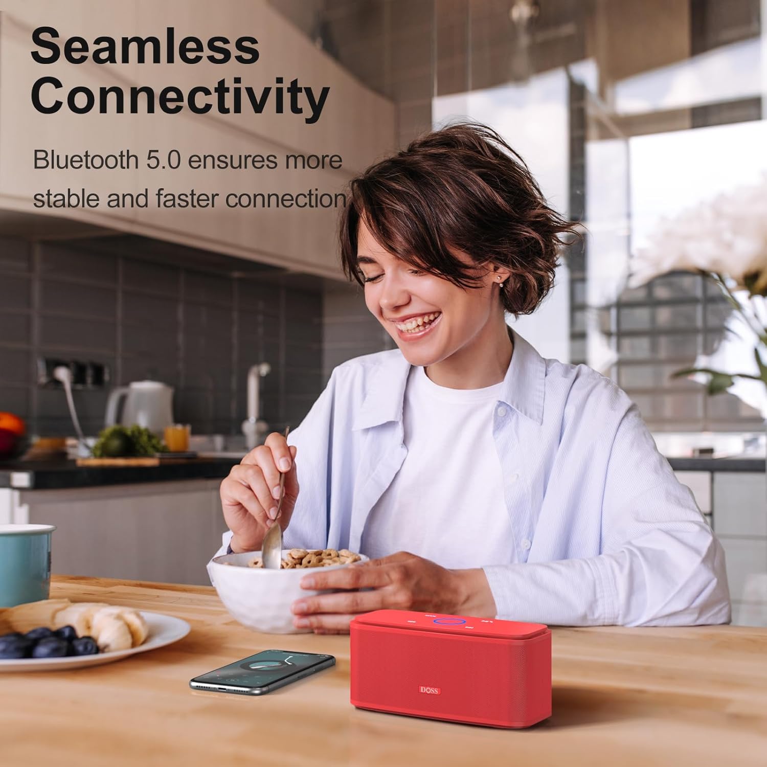 DOSS SoundBox Touch Wireless Bluetooth Speaker with HD Sound and Bass, IPX5 Water-Resistant, 20H Playtime, Handsfree, Portable for Office, Home, Outdoor, Travel-Red