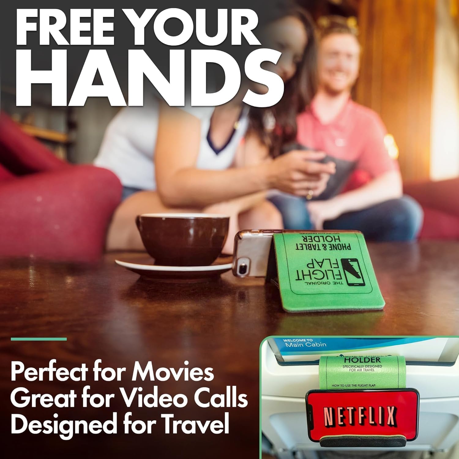 - USE FOR TRAVEL, WORK & LEISURE β Great for watching movies, entertaining kids, streaming workouts, hosting a zoom video call, or cooking with recipes on your phone. Use the FLIGHT FLAP phone stand anywhere to grip your device and view your content comfortably. Attaches to most airline seat backs and tray tables. During car rides, attach behind the headrest and stream movies for kids. Properly positions your phone or tablet to host zoom meetings.