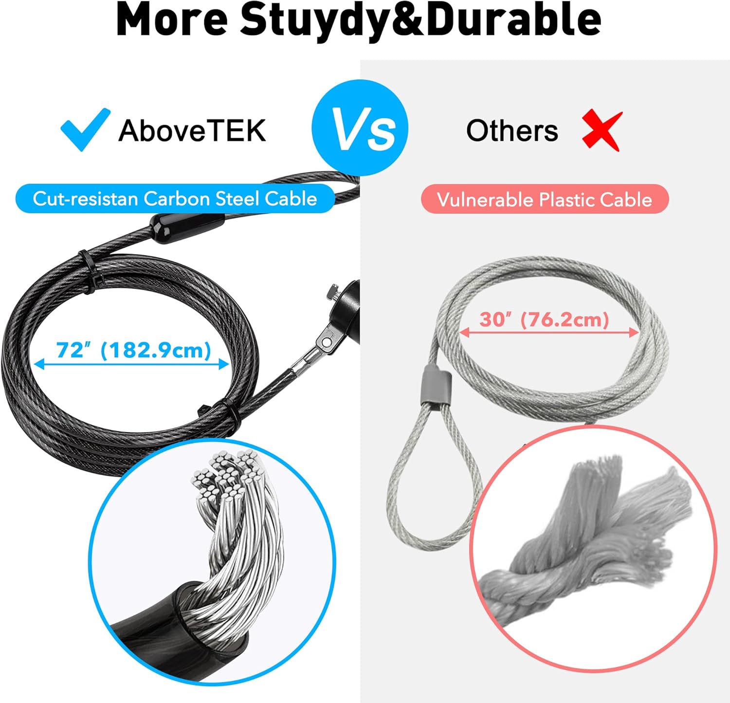 - Steel Cable Protection: The computer locking cable is made of cut-resistant galvanized steel, offering durability, flexibility, and anti-theft security. With a 6-foot cable length, you can move your iPad or MacBook freely while keeping it securely locked in place.