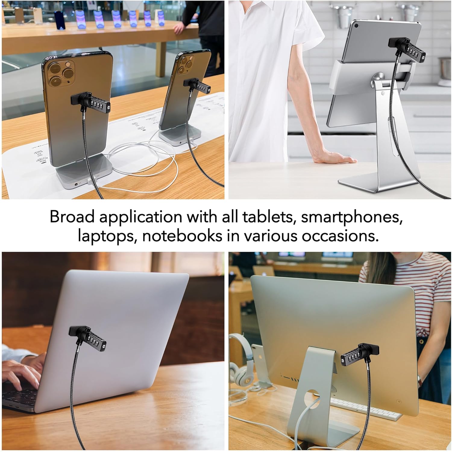 - Universal Compatibility: Broad application for laptop lock, iPad lock, tablet security cable, and monitor locking cable, ensuring secure protection across all your devices. Ideal for libraries, offices, retail stores, and other public spaces, keeping your valuable devices safe.