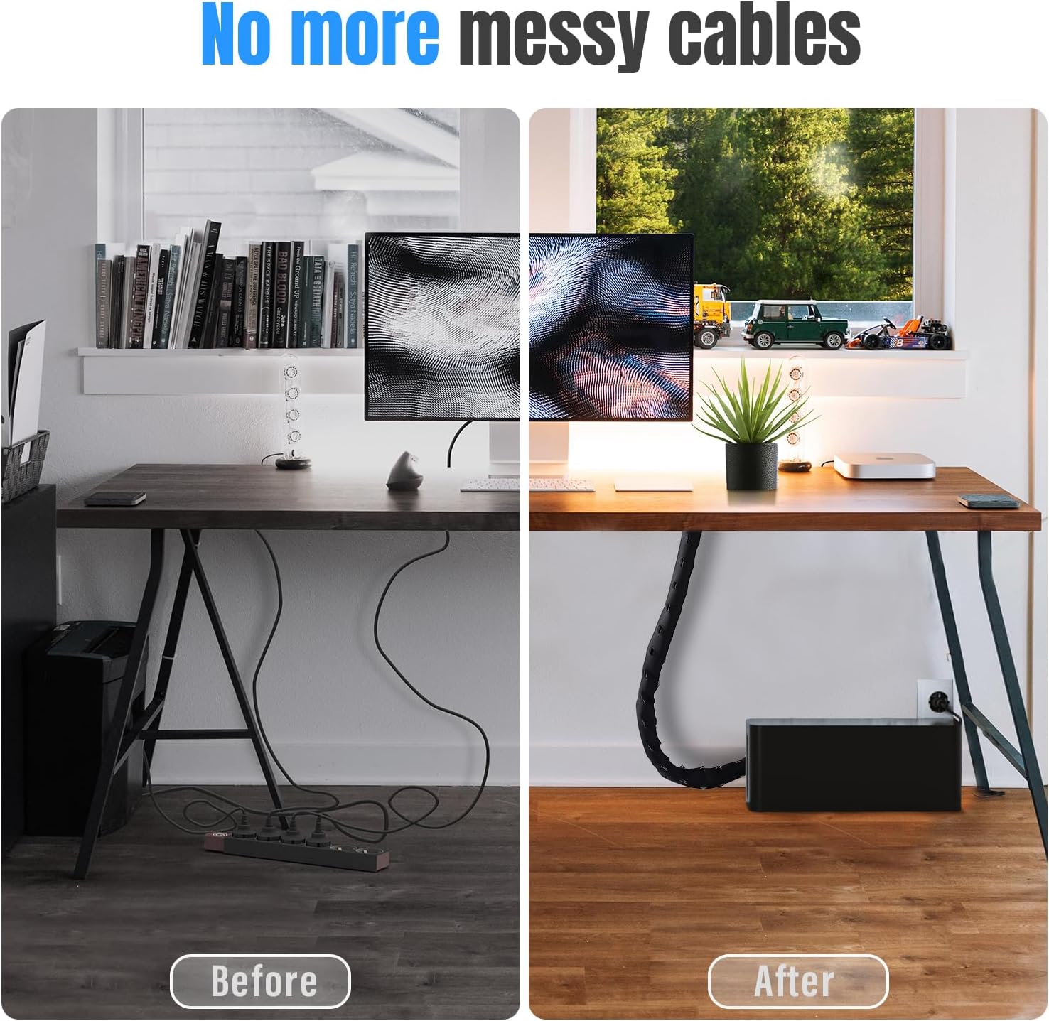 - STREAMLINED CABLE ORGANIZER FOR ANY SETUP: Tidy up your home or office effortlessly with our sleek cable management black. Designed to hide loose wires, power strips, and surge protectors, this black and white boxes organizer transforms messy cables into a clean and organized workspace, improving safety and aesthetics.