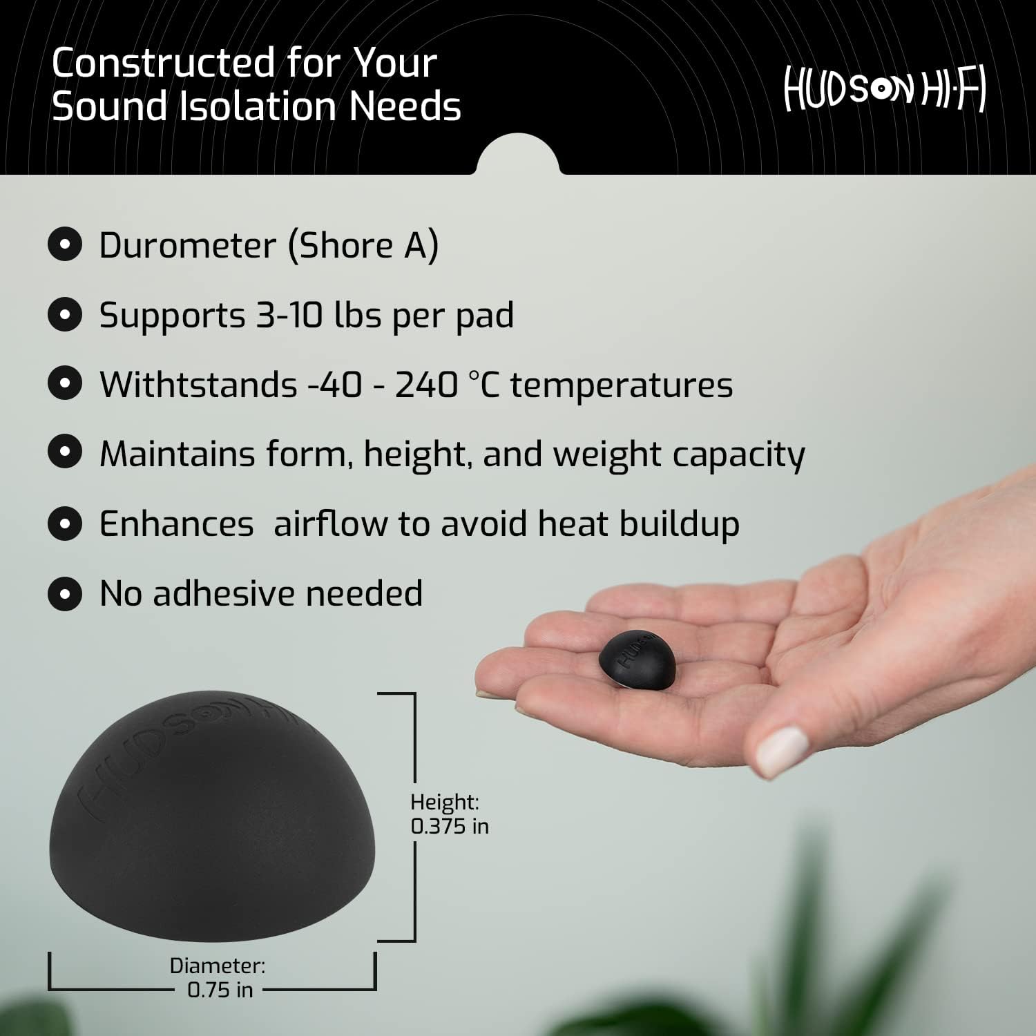 - Designed for Audiophiles & Casual Listeners: The Hudson HiFi Platinum Silicone Feet's sturdy Durometer 20 (Shore A) are perfect for 50-100 lbs components. Unlike solid stick on rubber feet, these won't scratch or ruin your device or surfaces. Each is 2.5" wide and 1.25" tall, and can withstand temperatures of -40°C ~ +240°C