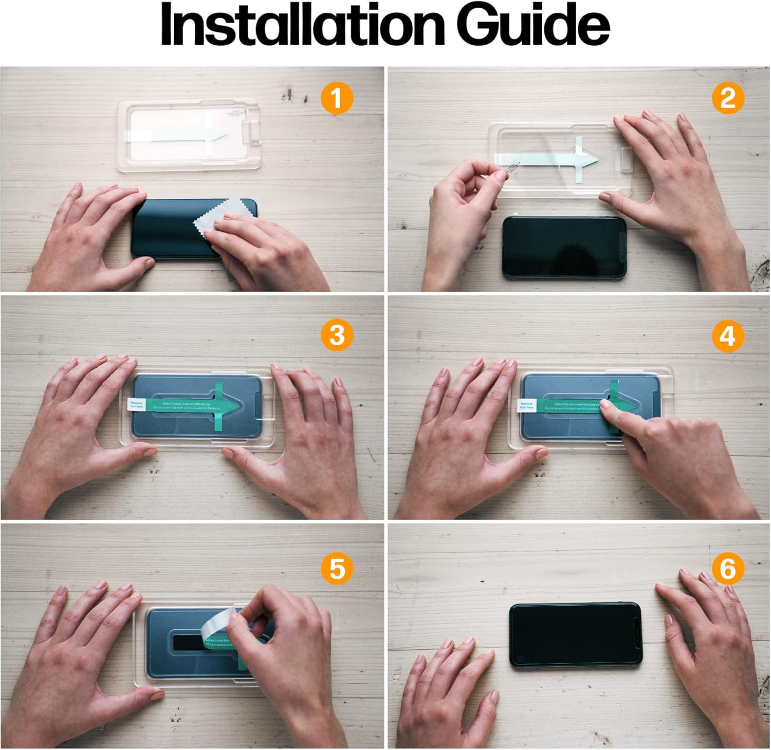 - EASY INSTALL KIT WITH PRE-INSTALLED GLASS - Our 60 second Easy App Tray guarantees you'll have a perfect, bubble-free install. Just peel off the sticker, place it and press on your phone. If you are not 100% satisfied, we'll send a new one for FREE. Kit includes: 2x Glass Screen Protectors, 1x Easy App Tray, 1x Instruction Manual, 2x Cleaning Wipes, 2x Microfiber Cloths and 2x Dust Removal Adhesive Strips.