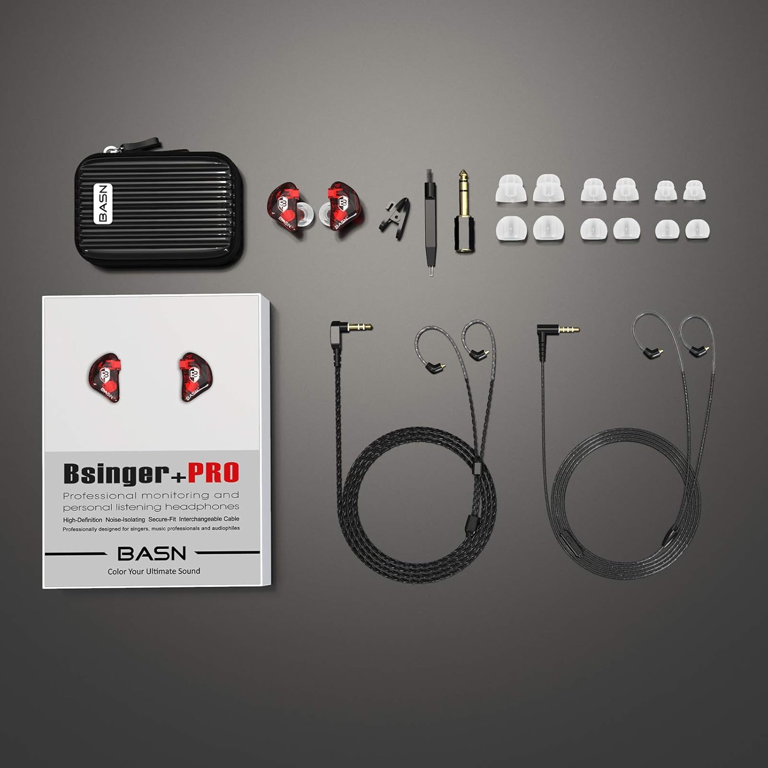 BASN Bsinger PRO in-Ear Monitors Hybrid Dynamic Dual Drivers Two Detachable MMCX Cables Musicians in-Ear Earbuds Headphones (Red)