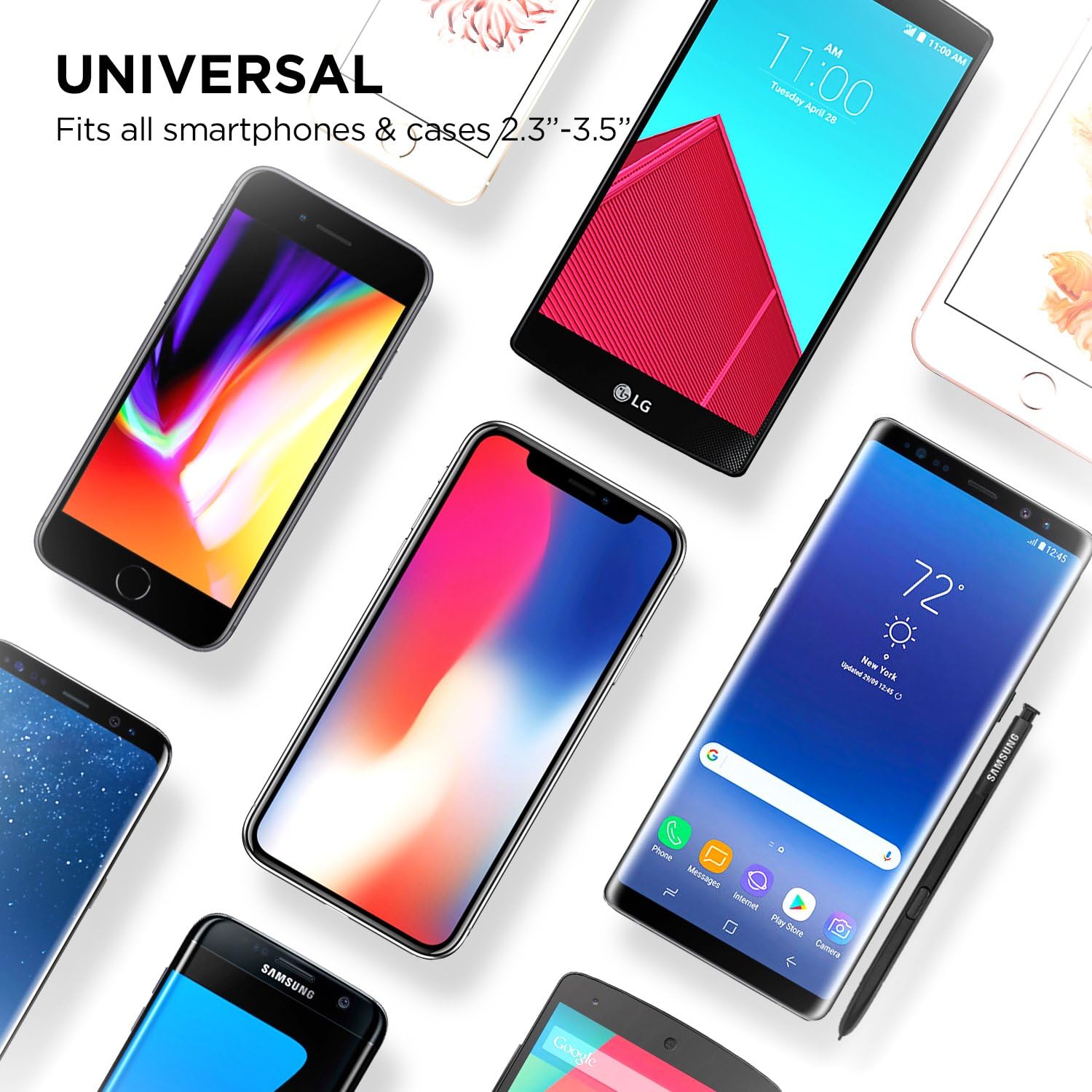 - UNIVERSAL MOUNTING: Holds all phone and case combinations from 2.3 inches to 3.5 inches in width.