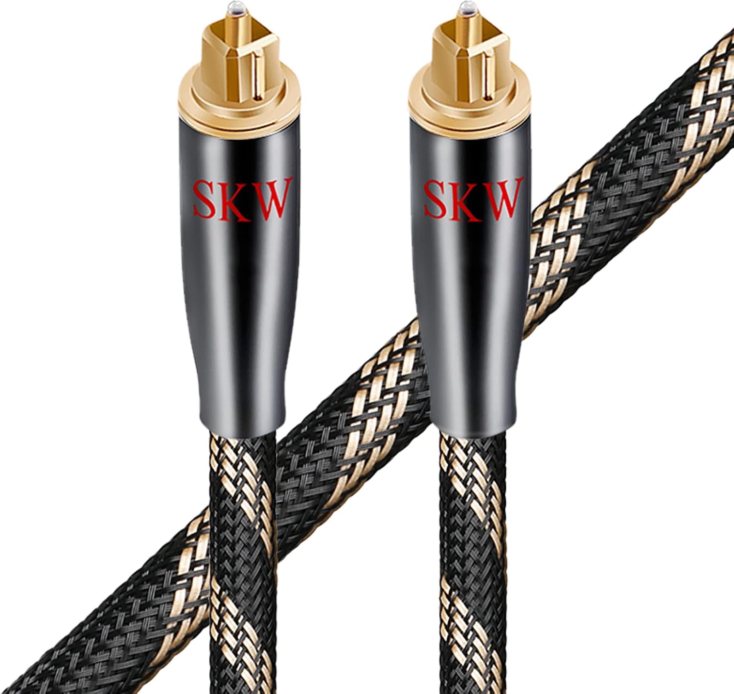 SKW Optical Digital Audio Toslink Cable Home Theater Fiber Optic Male to Male Gold Plated S/PDIF Cables - Copper Connectors, High-Reinforced Transparent Polymer Core, Nylon Braided 4.9ft(1.5M)