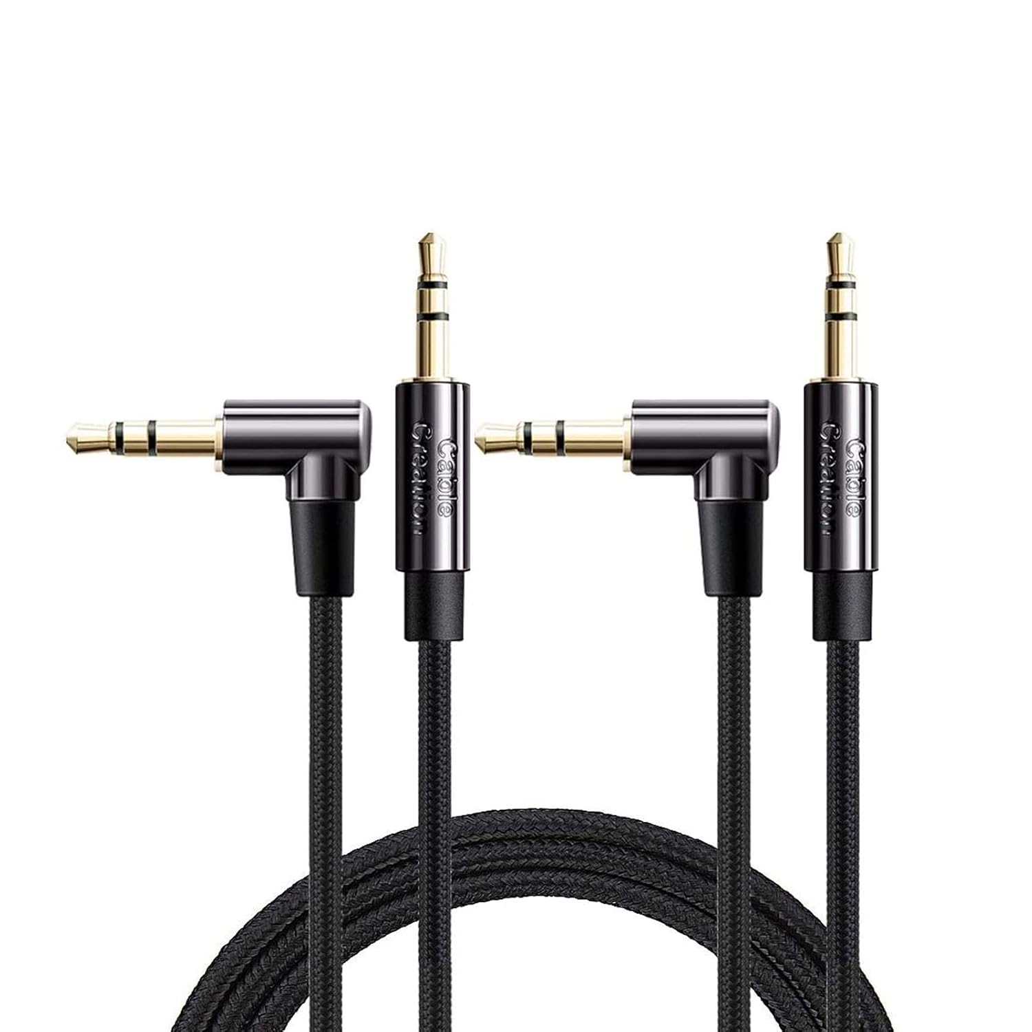 CableCreation 3.5mm Audio Cable, [2-Pack 1.5FT] Right Angle Male to Male Auxiliary Cable with Silver-Plating Copper Core Compatible with Beats, Car, iPhones, Tablets, PS4, 24K Gold Plated, Black