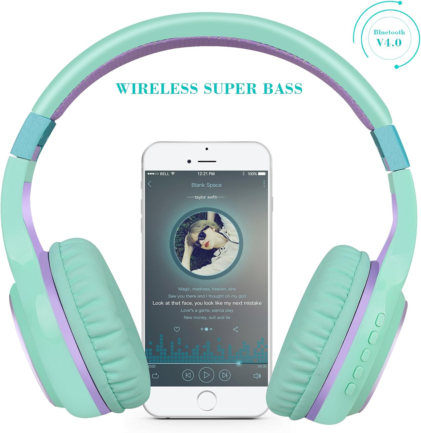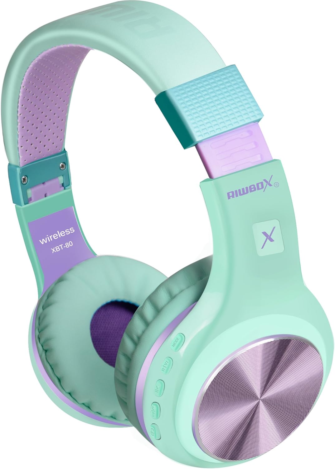 Riwbox Bluetooth Headphones, XBT-80 Folding Stereo Wireless Bluetooth Headphones Over Ear with Microphone and Volume Control, Wireless and Wired Headset for PC/Cell Phones/TV/Gym (Purple Green)