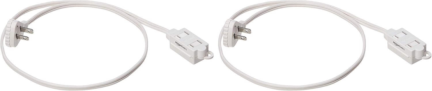 Amazon Basics Extension Cord with Multiple Outlets, 3 ft 2-Prong Indoor Power Strip, Flat Plug, 13 Amps, 1625 Watts, 125 VAC, White, 2-Pack