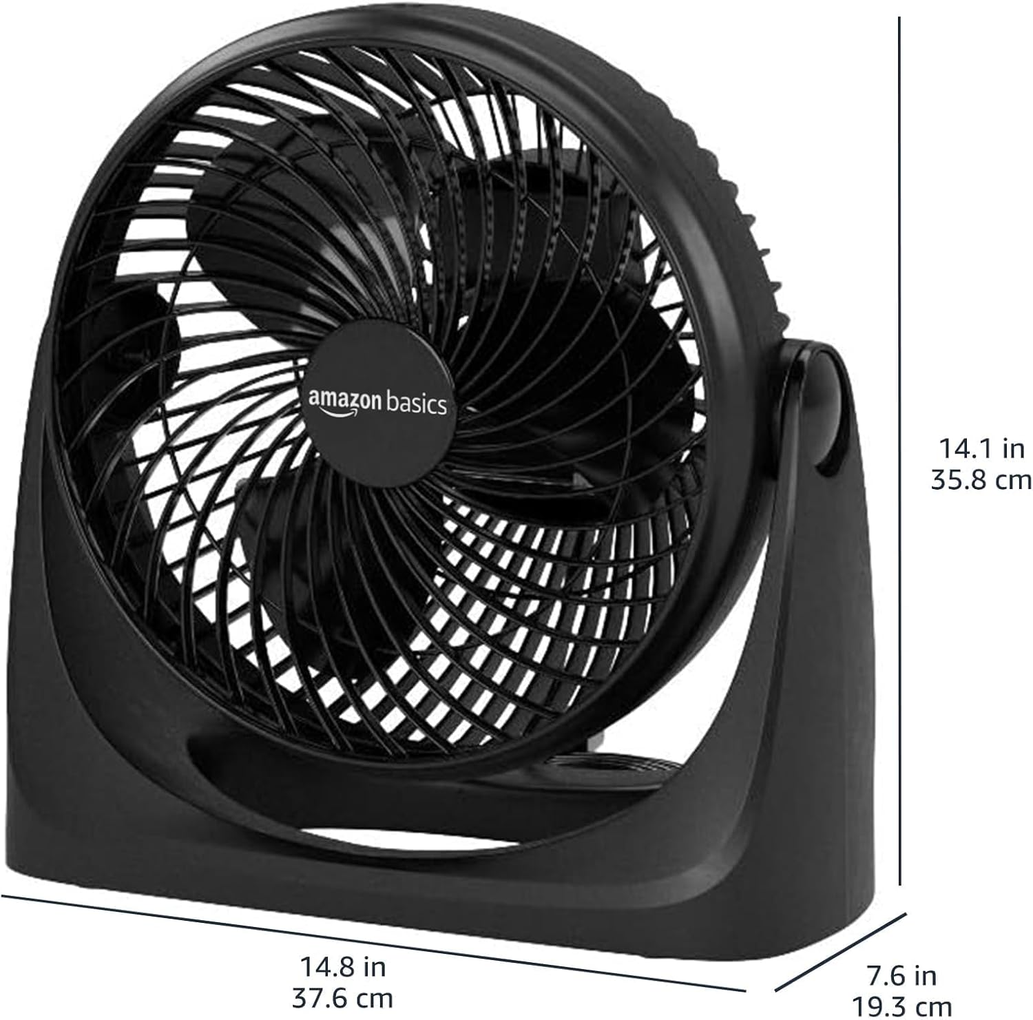 Amazon Basics Air Circulator Fan, Desk Fan for Bedroom, Home and Office, With 90-Degree Tilt Head, 3 Speed Settings, Lightweight (4.2 LBS), 70 Watts, Black, 14.8"Wx7.6"Dx14.1"H