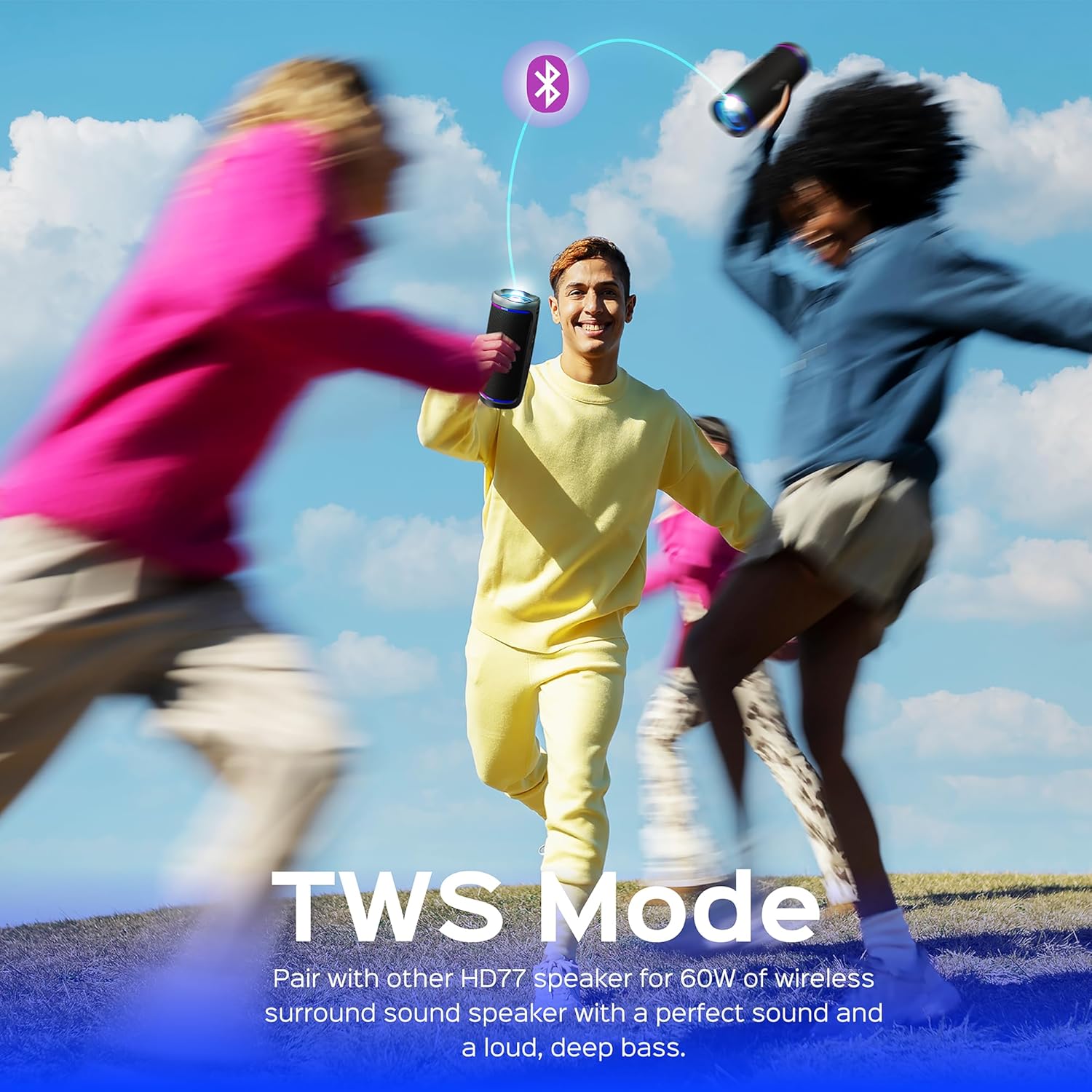 - Bluetooth Speaker with Lights and Robust Waterproofing: The HD77 dazzles with vibrant RGB lighting and an IPX7 waterproof build. Experience a waterproof speaker bluetooth perfect for poolside, beach vibes, and biking escapades.