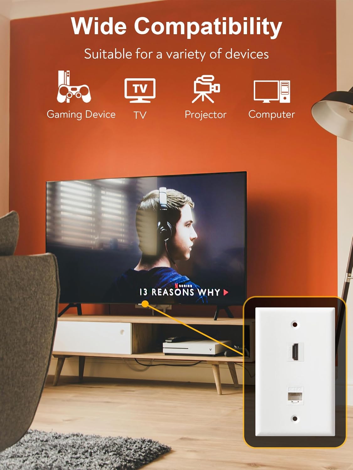 - Convenient Usage: This wall port jack is the perfect solution for connecting TV boxes, Router or other HDMI/Ethernet Channel-enabled devices to your other devices. HDMI Wall Plate is compatible with 4K@60Hz for your high-resolution needs. Ethernet keystone is compatible with Cat7 Cat6 Cat5 Cat5e network ethernet cable.