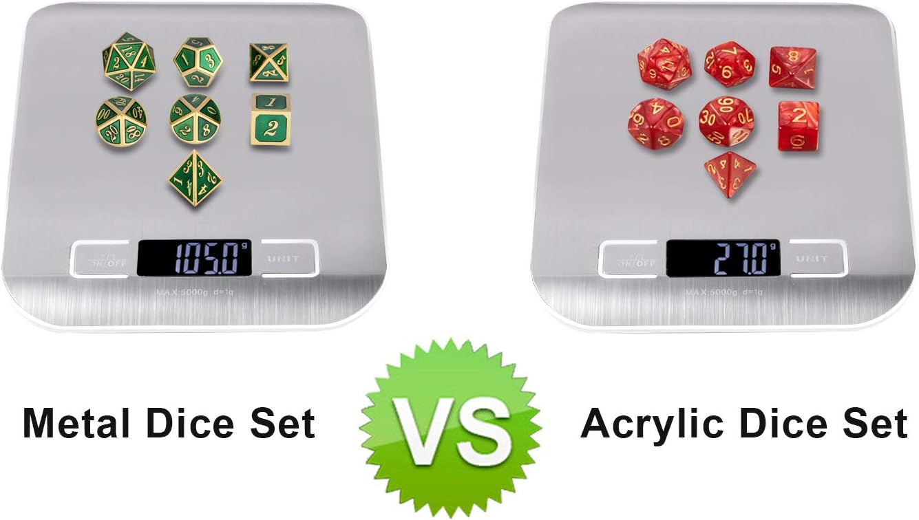 - DND Metal Dice Set: One set dice total 7 pcs including D4, D6, D8, D10, D12, D20 and D%.