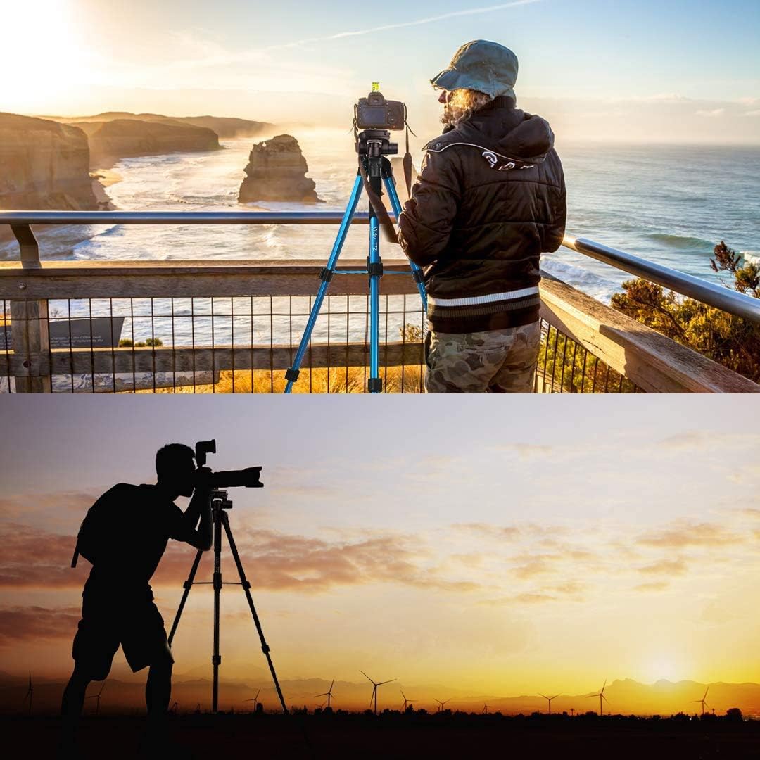 - 【TALL & LIGHTWEIGHT FOR TRAVEL】 Height of Tall Camera tripod from 21"-72", 4-section column legs are able to stretch out to be tall enough to find the right height. Compactness when stored and weighs only 3.3 lbs/1.5 kilograms, Lightweight and Portable, easy to move around with a strapped carrying bag. Great for a vlogger and YouTuber to do live videos