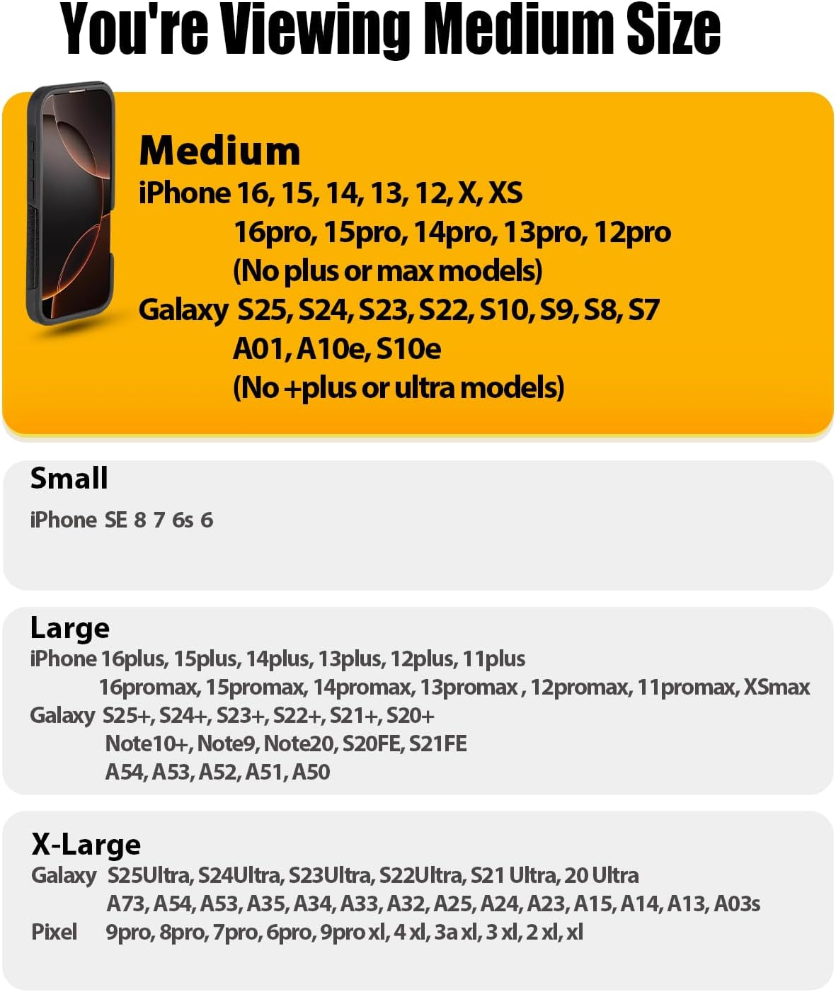- Premium Hand-Crafted Medium Belt Holster for iPhone & Samsung Galaxy Phones โ Fits iPhone 16 & Pro 16e 15 15pro 14 14pro 13 13pro 12 12pro Samsung S25 S24 S23 S22 S10 S9 S8 S7 A01 A10e S10e โ Even with Cases for Secure, Effortless Access.