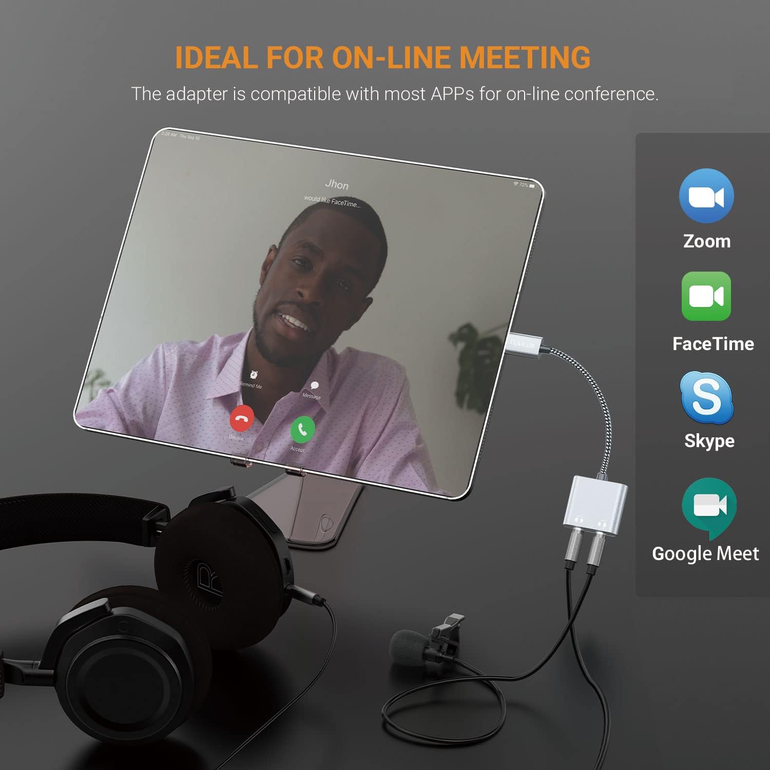 - [Compatible with TRRS MIC] – The adapter is also ideal for working from home with its various compatibility for most on-line conference APPs such as “Zoom”, “Skype”, “Google Meet” and “FaceTime”. Simply plug in a 3.5mm TRRS microphone and headphones and you can have better audio quality for your meeting. You can use the adapter for your live stream too.