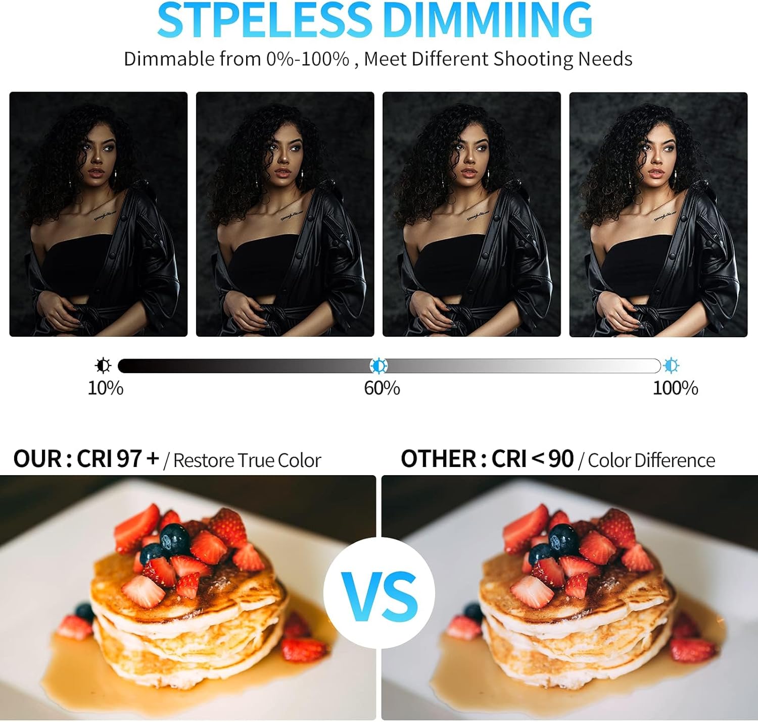 - Professional two color LED light: the studio light uses professional and demanding LED beads, CRI 97+ and TLCI 97+, to show the real and natural color for YouTube Studio Photography Video Shooting.