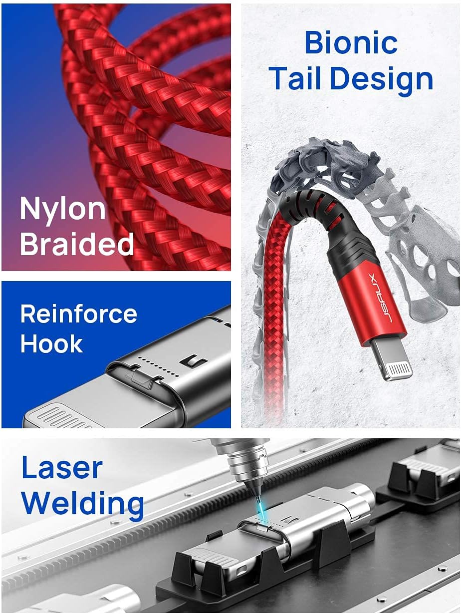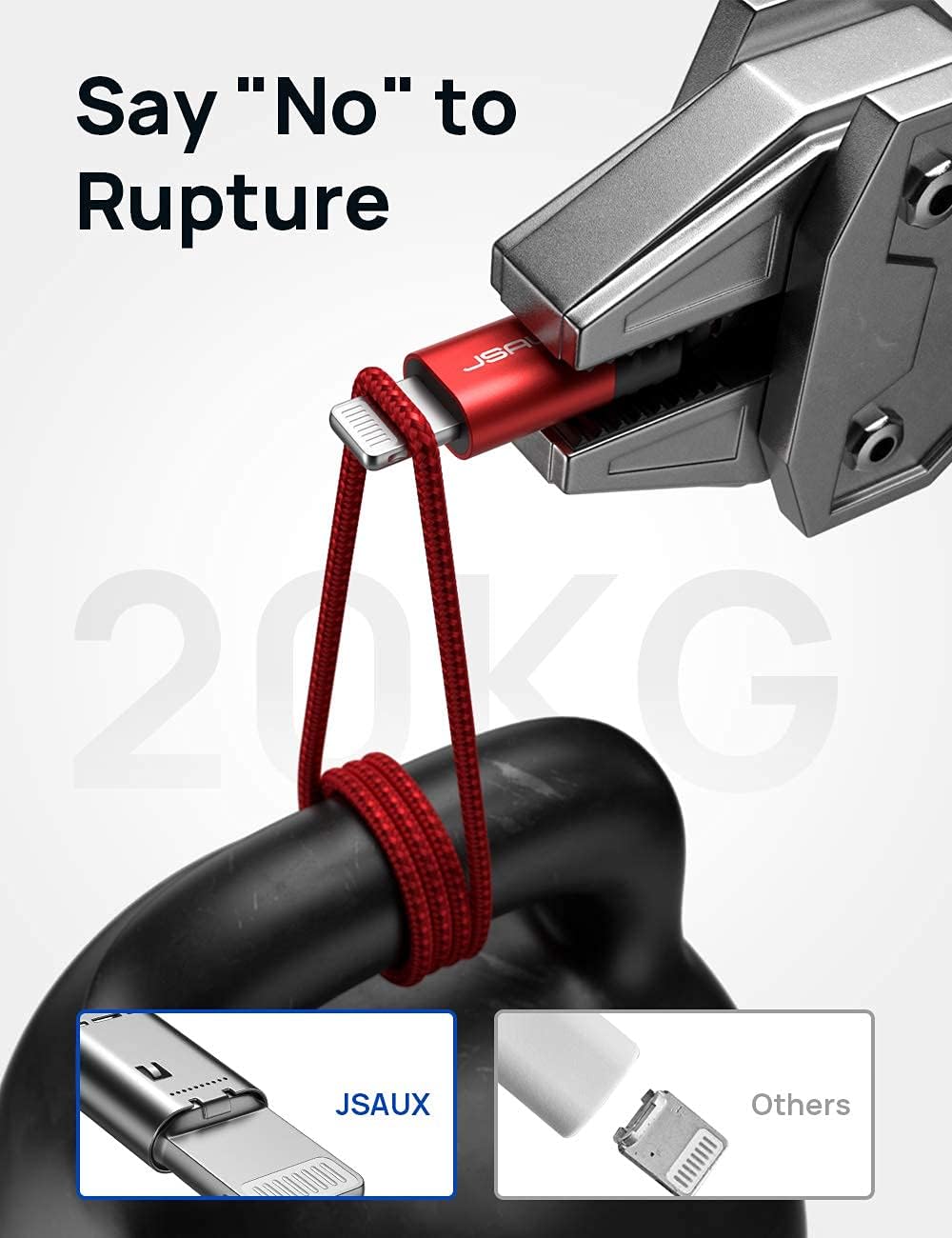 - Superior Durability: The JSAUX Lightning cable features a nylon braided layer, alloy casing, and strain relief joints, making it 10 times stronger than the original iPhone cable