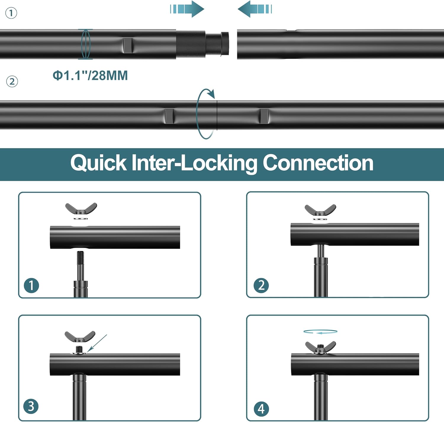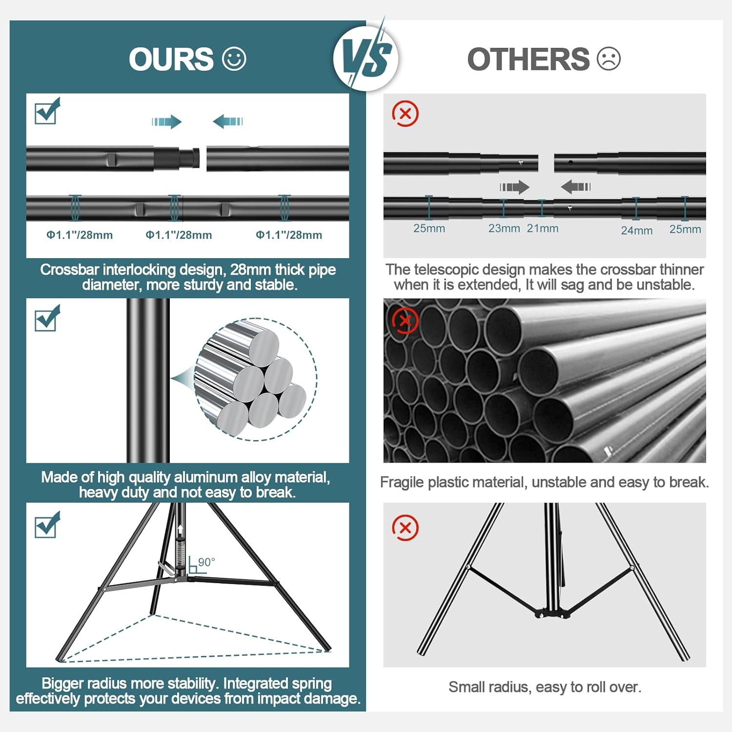 - The Heavy Duty Backdrop Support System Is Easy To Set Up And Take Down,No Need For Any Tools.Aluminium Material, Stable And Sturdy, Suitable For Backdrop, Home, Studio Or Outdoor