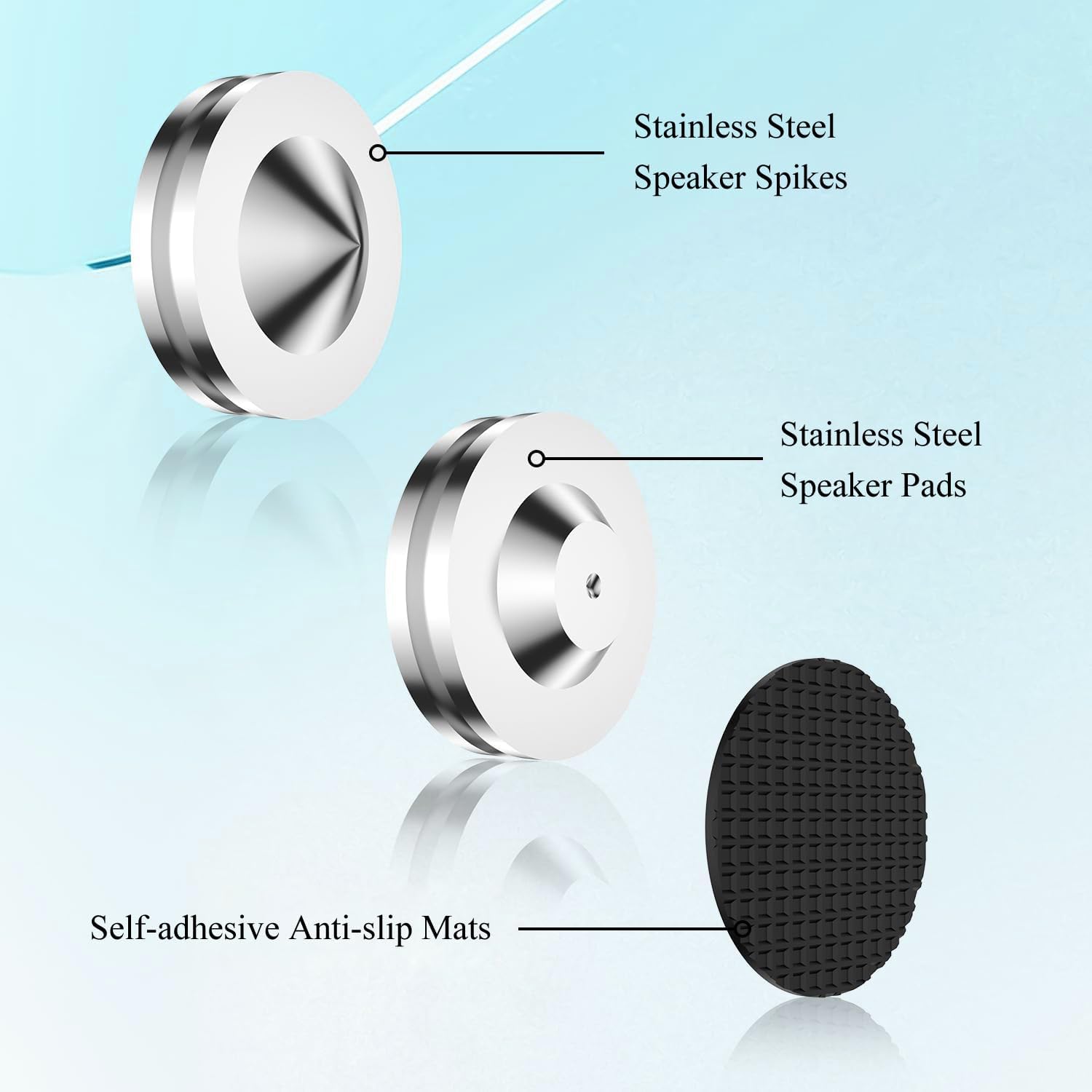 Audiocrast 4X HiFi Speaker Spikes, Isolation Stand Feet Pad, Stainless Steel Shock Absorber Vibration Dampener with Non-Slip Mats for Audio Speaker Subwoofer CD DVD Amplifier Turntable DAC