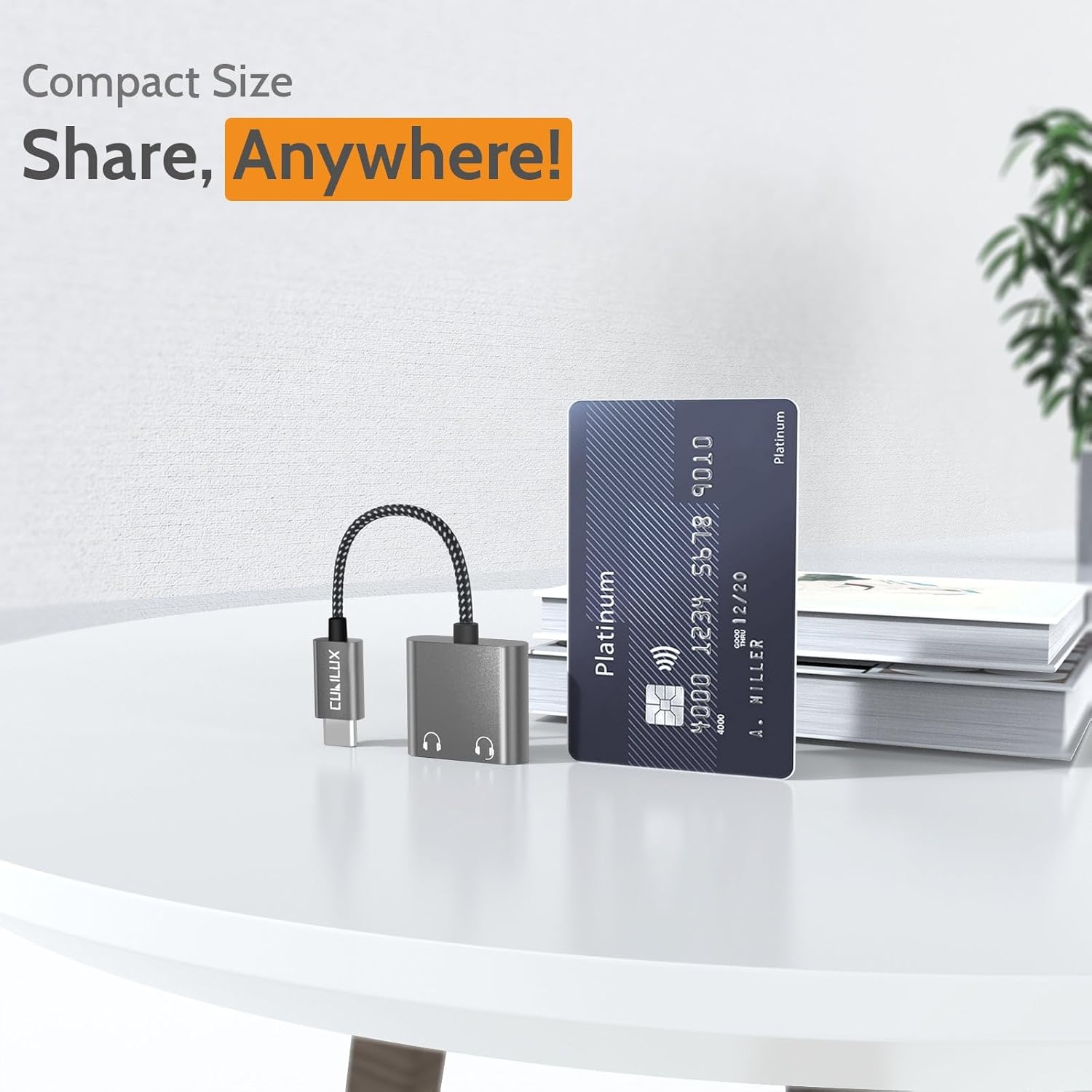 - [Headphone Sharing Adapter for USB C Devices] – The adapter splits the USB Type C port into 2 headphone jacks and allows you to share music, movies or games with your friend by connecting 2 pairs of headphones without disturbing others, e.g., when traveling by airplane.