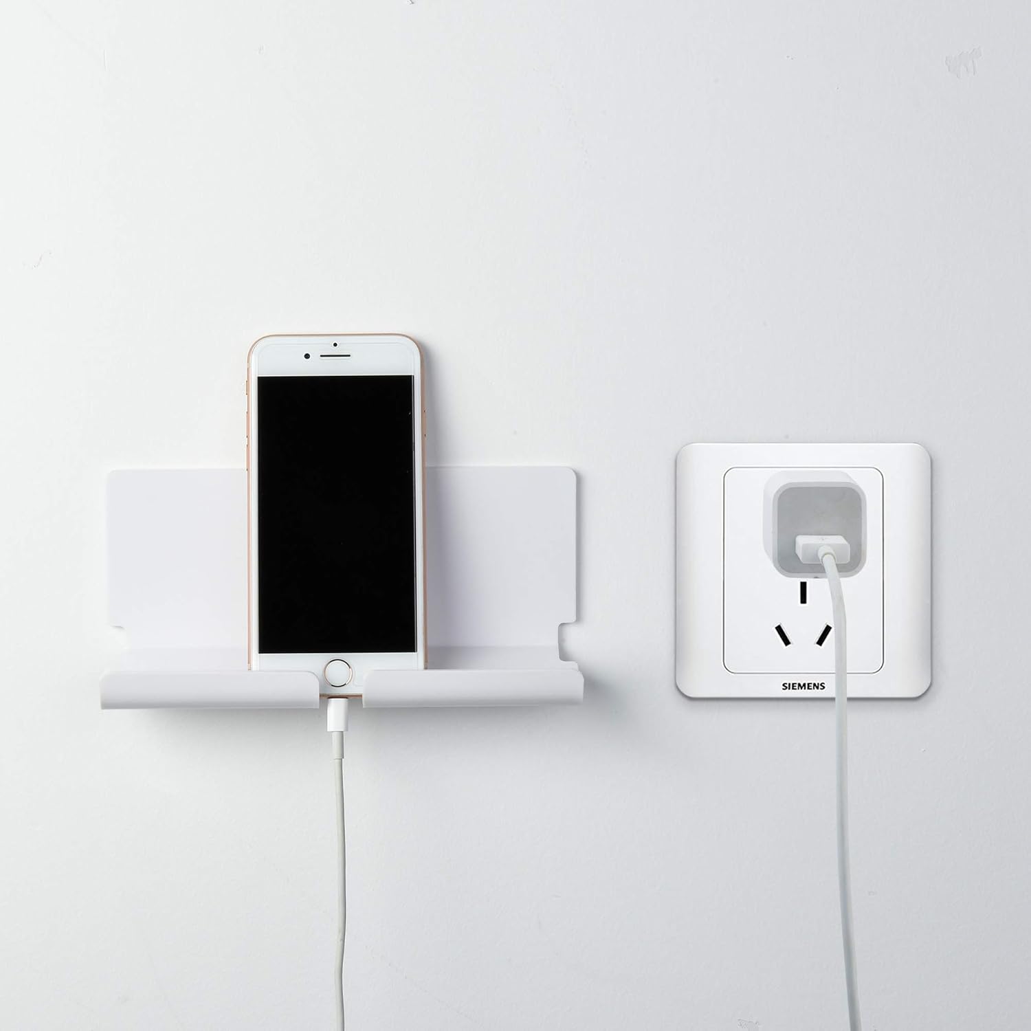 - Convenient tablet wall mount shelf for charging smartphones or ipad tablets directly from the wall outlet without a desk; Also serving as AC/cellphone cord organizer