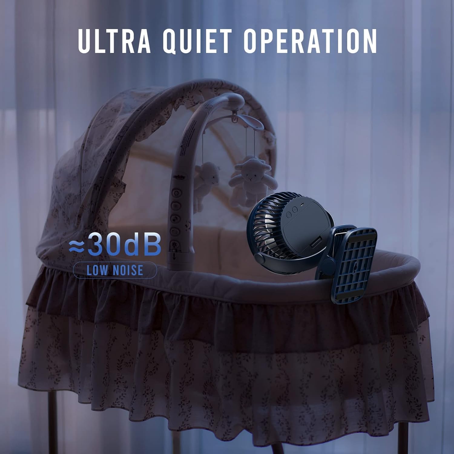 - ✅【CORDLESS BATTERY STROLLER FAN&ULTRA QUIET】:Wireless design for outdoor use or a baby stroller, which is very convenient;The battery fan built with professional high performance JIWAN brushless motor with faster speed, strong wind and low noise (below 40dB); This stroller fan has no wobbling or vibrating even at the highest speed
