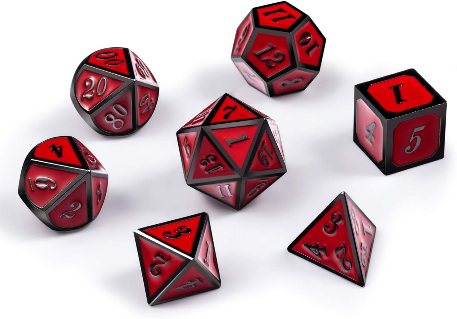 DnDnD Red D&D Game Dice,7 Die Polyhedral Metal Dice with Gift Metal Tin for RPG DND Dungeons and Dragons Dice Collector Board Game Player