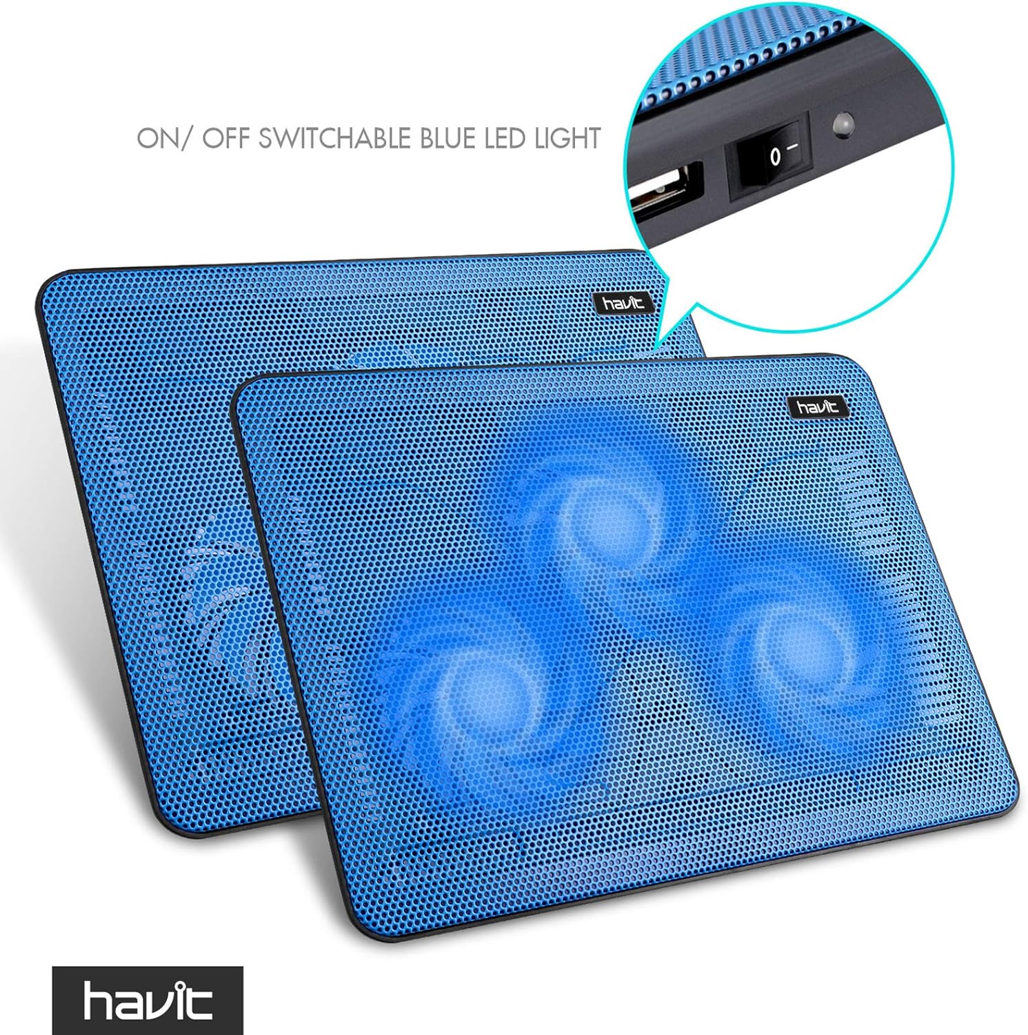 Havit HV-F2056 15.6-17 Inch Laptop Cooler Cooling Pad - Slim Portable USB Powered (3 Fans) (Blue)