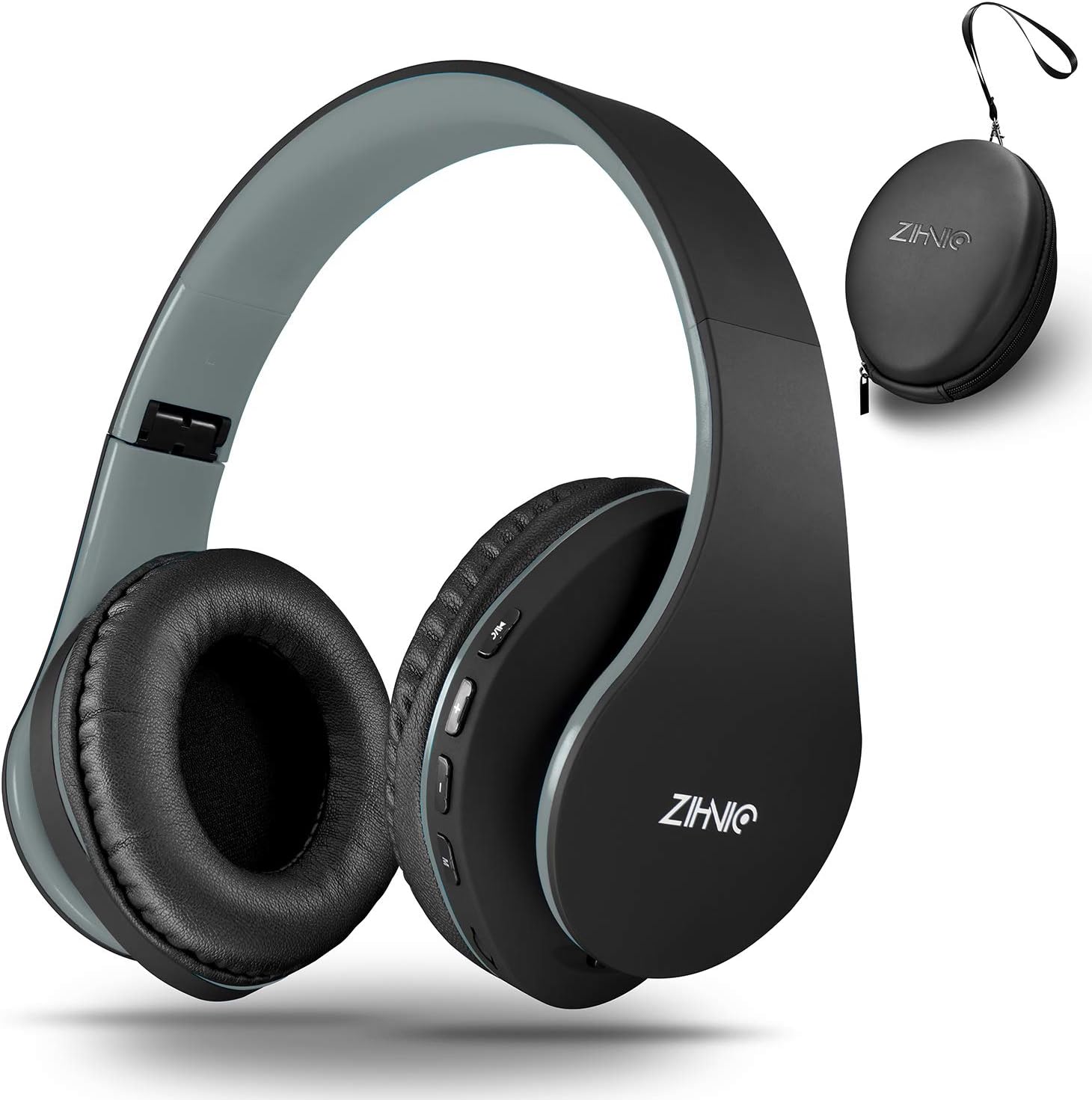 ZIHNIC Bluetooth Headphones Over-Ear, Foldable Wireless and Wired Stereo Headset Micro SD/TF, FM for Cell Phone,PC,Soft Earmuffs &Light Weight for Prolonged Wearing(Black/Gray)