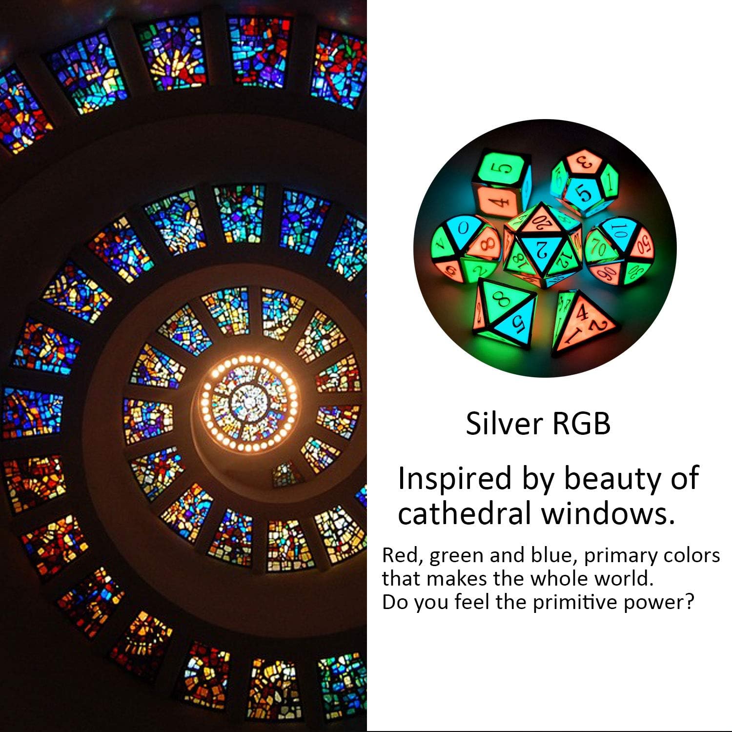 - Beautiful Enamel Dice: The dice have silver edges and green red blue enamel coatings which glow bright blue red green colors in the dark, great for dice collection or as a gift.