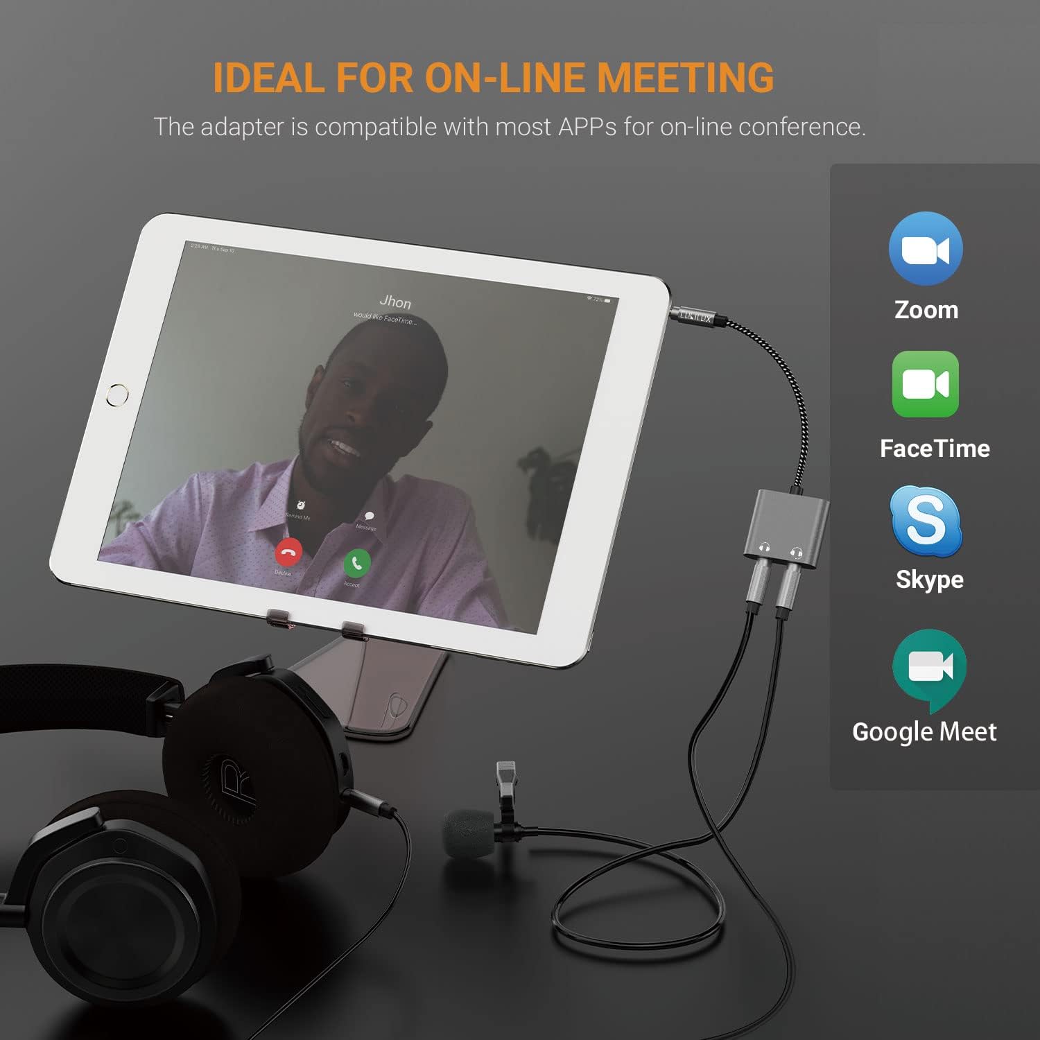 - [Compatible with TRRS MIC] – The adapter is also ideal for working from home with its various compatibility for most on-line conference APPs such as “Zoom”, “Skype”, “Google Meet” and “FaceTime”. Simply plug in a 3.5mm TRRS microphone and headphones and you can have better audio quality for your meeting. You can use the adapter for your live stream too.Please contact us via amazon if you need help.