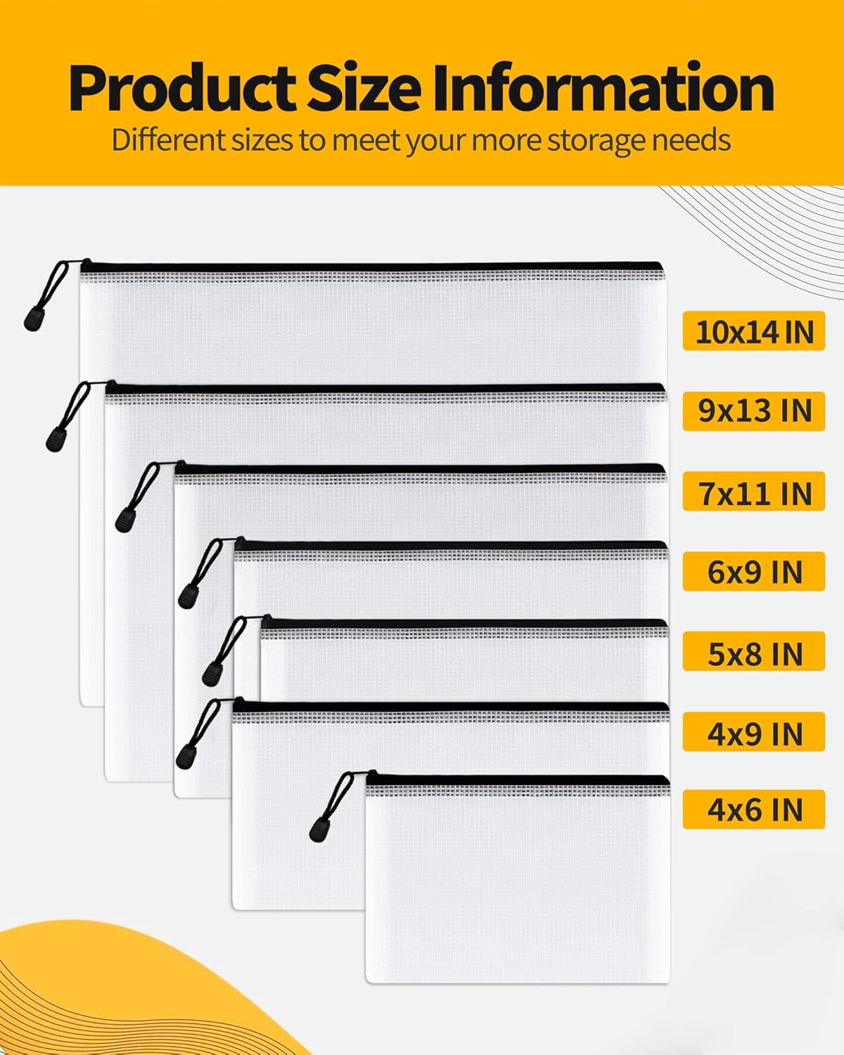 - DURABLE & PORTABLE: SUNEE zipper file bags are made of thick vinyl material, water-resistant, moisture-resistant. Each metal zipper is equipped with a rope loop, which is strong and durable. It can be used as a hanging ring and ready to hang.