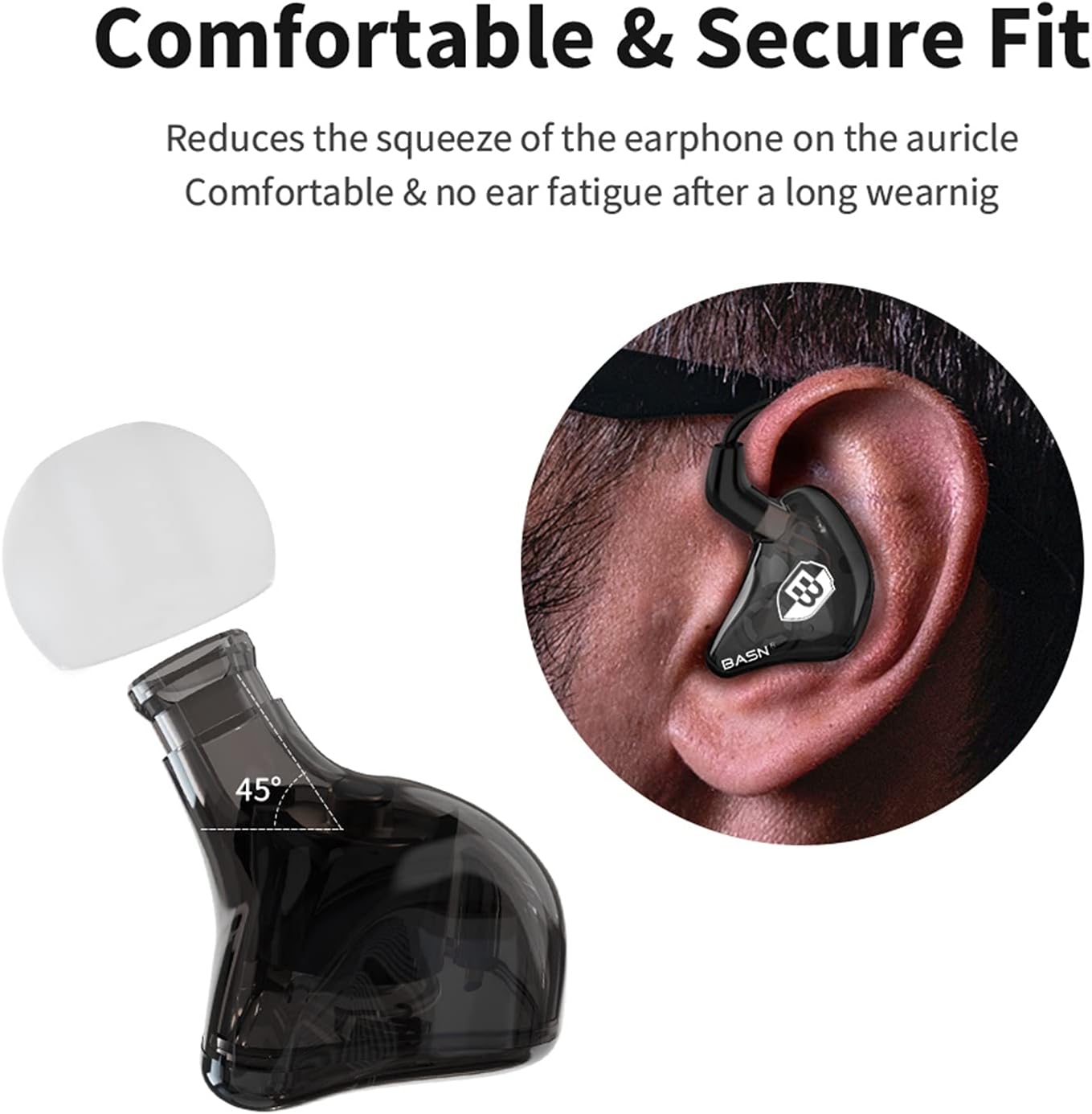 - 【Build Quality & Comfort】The BASN in-ear monitor headphones for musician well-assembled housing is smooth and glossy, it feels also solid and no crackling noise when you try to squeeze them; As for the comfort, after a long music listening session (3-4 hours), has no ear fatigue at all