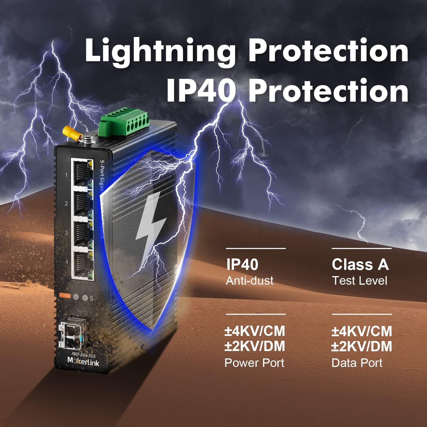 - IP40 protection grade, working temperature -40~75°C(-40~185°F), super robustness, anti-lightning, anti-static and anti-overload protection, adapt to various harsh environments