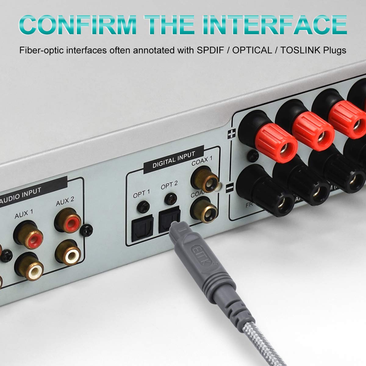 EMK Digital Optical Audio Cable Toslink Cable - [Cotton Braided Jacket,Durable and Flexible] Fiber Optic Cord for Home Theater, Sound bar, TV, PS4, Xbox & More (6.6Feet/2M)