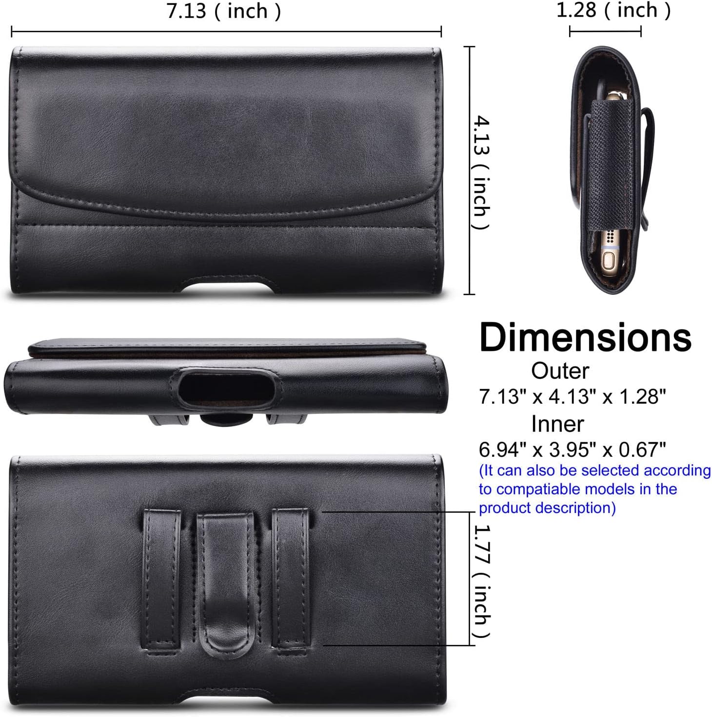 - 【Size】Approximate Inner Dimensions: 6.94 x 3.95 x 0.67 inches(176.3 x 100.3 x 17 mm). Fits cell phones with otterbox defender case/lifeproof case/thick hybrid armor case on.