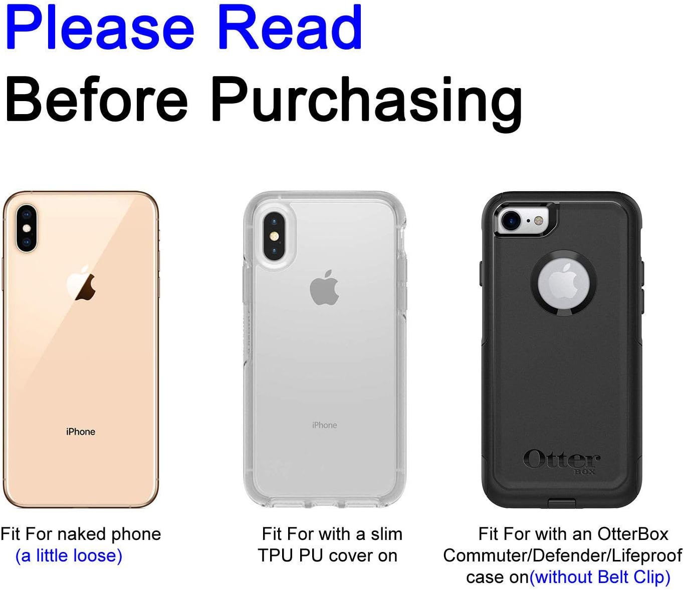 - 【Size】Approximate Inner Dimensions: 6.94 x 3.95 x 0.67 inches(176.3 x 100.3 x 17 mm). Fits cell phones with otterbox defender case/lifeproof case/thick hybrid armor case on.