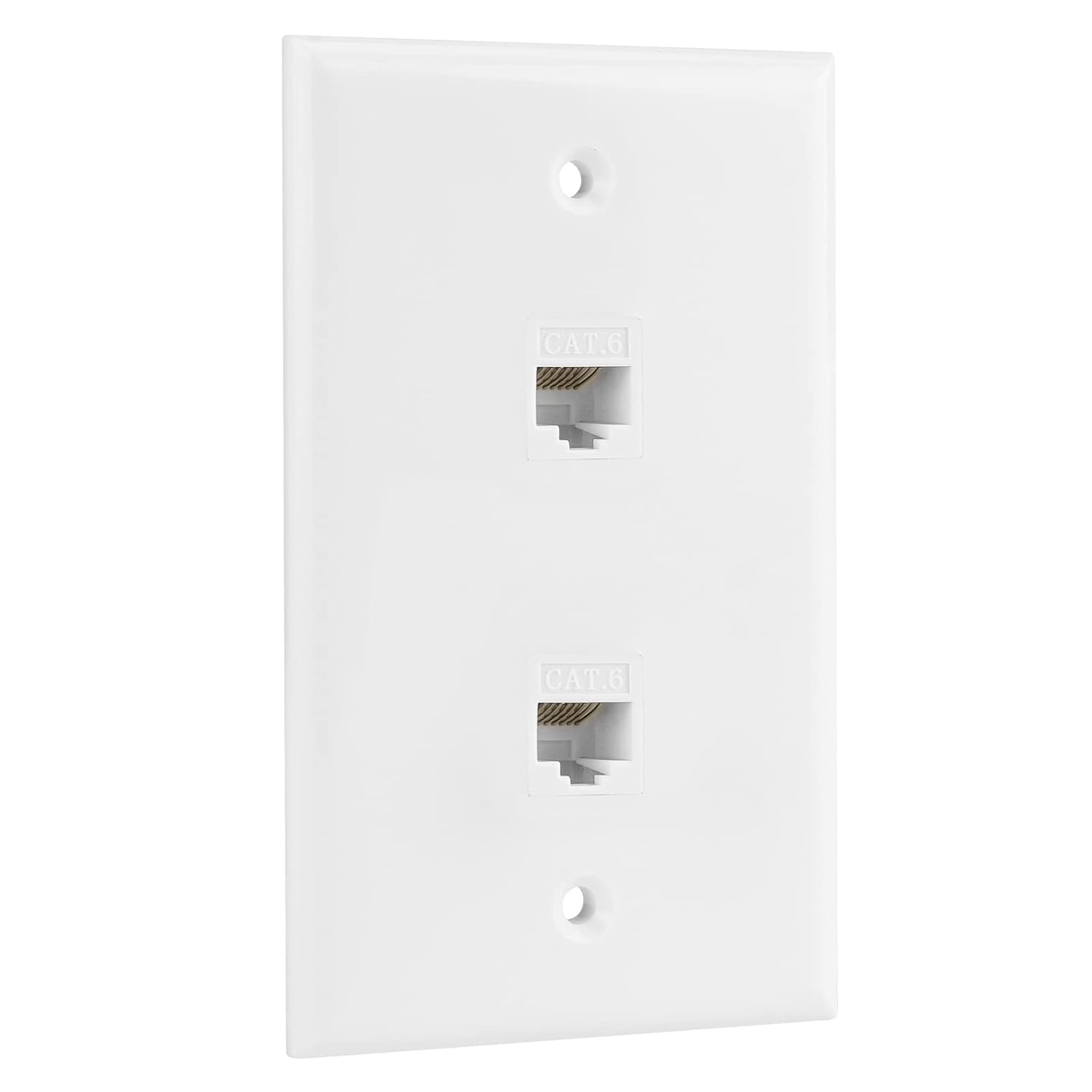 Ethernet Wall Plate, 2 Port Cat 6 RJ45 Keystone Female to Female Wall Plate Compatible with Cat7/6/6e/5/5e Ethernet Devices
