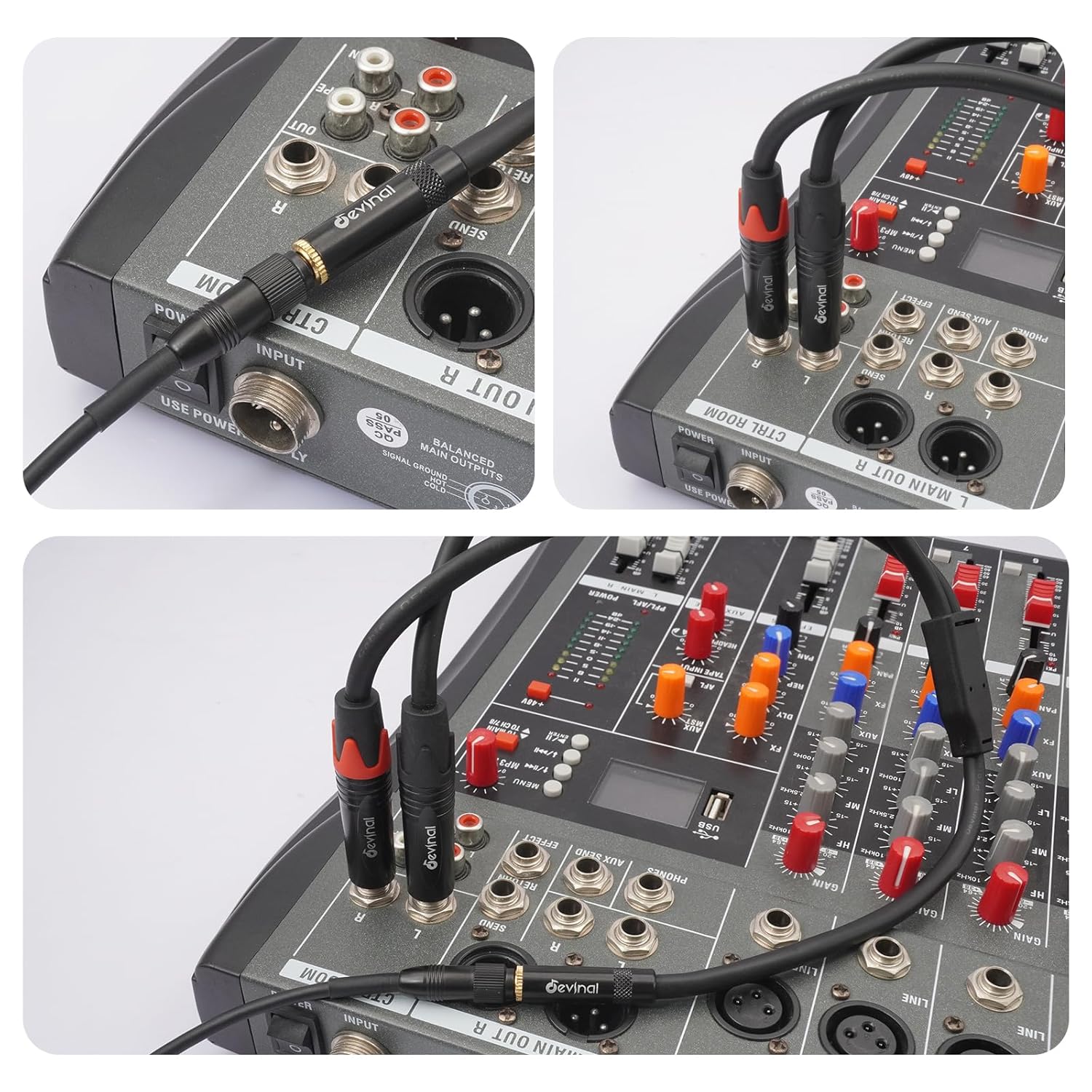 Devinal 3.5mm to Dual 1/4 Y Splitter Cable, 1/8" Female TRS to Dual 6.35mm TS Male Adapter, Female Mini Jack Stereo to 2 Quarter inch Mono Converter 1 feet