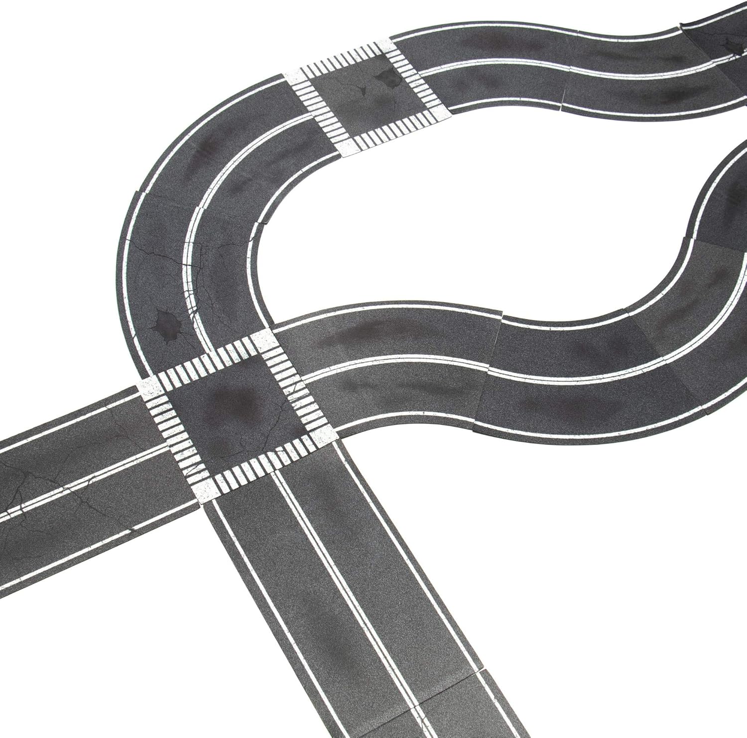 - Components: This pack includes 3 unique shapes that are completely modular and can be arranged and rearranged: 6 straight roads, 8 curved bends and 2 intersections