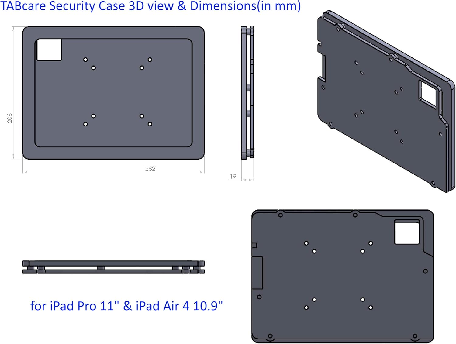 TABcare Anti-Theft Acrylic VESA Enclosure for Apple iPad Pro 11" 1st, 2nd, 3rd, 4th gen. with Free Wall Mount Kit & 90-Degree Angle USB C Cable (iPad Pro 11 1/2/3/4, Black)