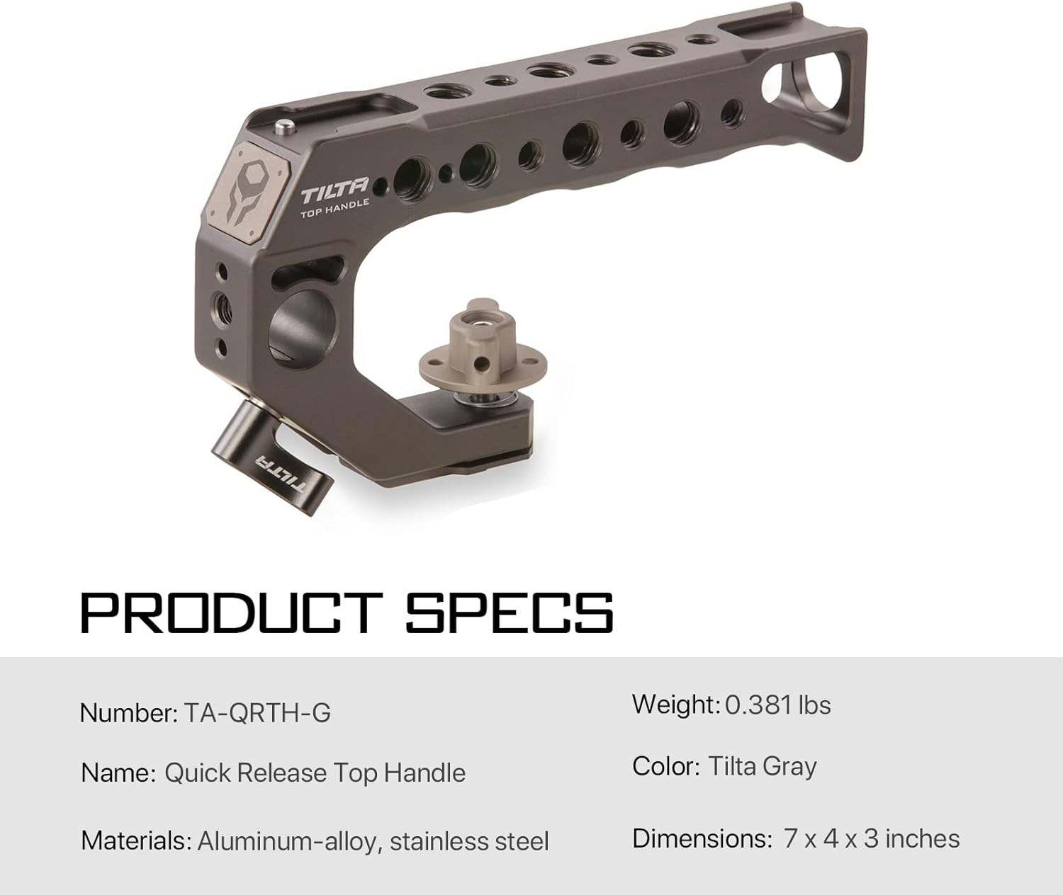 Tilta Quick Release Top Handle - (for BMPCC 4K/6K and Most DSLR/mirrorless Cameras) (Tilta Gray)
